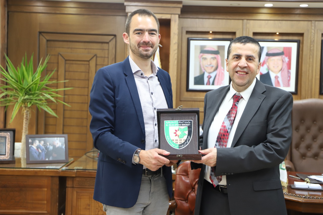 وقد حضر اللقاء الاستاذ الدكتور سعيد أبو رمان عميد البحث العلمي والابتكار والاستاذ الدكتور عمر العايد نائب عميد البحث العلمي والابتكار والدكتوره دانا محادين مدير وحدة التعاون العلاقات الدولية.