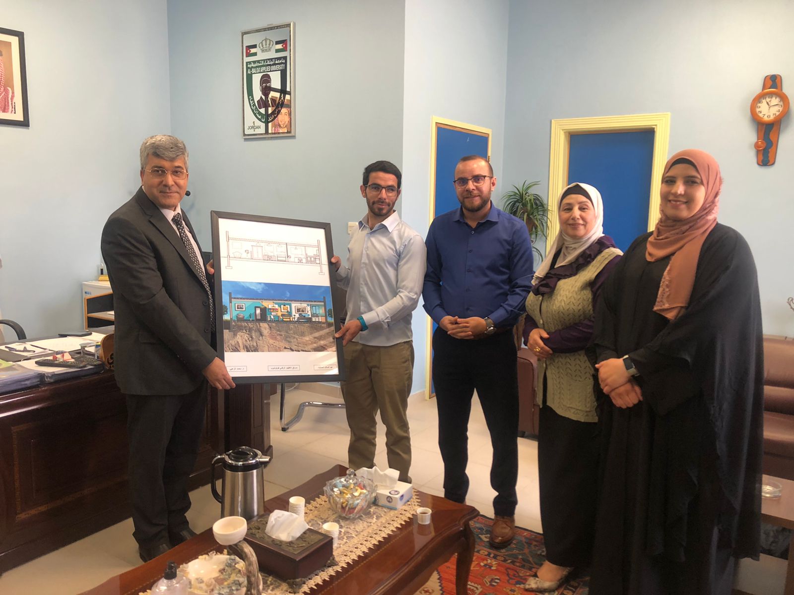 إيمانا من رسالة جامعة البلقاء التطبيقية، بتقديم تعليم تطبيقي وتقني عالي الجودة وتوفير بيئة منافسة حاضنة ومحفزة للإبداع والابتكار والتركيز على البعد التطبيقي والتكنولوجي في عمليات التعليم والتعلم وديمقراطية التعليم من خلال تحقيق مبدأ تكافؤ الفرص كلا حسب قدراته وإمكانياته و مؤهلاته الشخصية ومن مبدأ ادماج ذوي الاحتياجات الخاصة في المجتمع التعليمي وسوق العمل فقد قام الاستاذ الدكتور عبدالمطلب الخضرواي عميد كلية اربد الجامعية بالتفضل بوضع لوحه فنية في ركن اركان عمادة كلية اربد الجامعية تمثل احد اعمال الطالب المجتهد عبدالسلام الحمايده من تخصص فنون التصميم الداخلي والديكور، في مساق الاظهار الرقمي (فوتوشوب)، وتحت أشراف المدرس محمد الزعبي، وبحضور رئيس قسم العلوم التطبيقية السيدة وداد العلاونه و حضور مترجمة لغة الاشارة السيدة فاطمة ابو عياد، حيث عمل الطالب على توظيف برنامج الفوتوشوب بأظهار احد المقاطع المعمارية والتي من خلالها قام الطالب باظهار ما لديه من قدرات والتي اظهرت تنافسية عالية ، حيث قام الاستاذ الدكتور العميد بعرض اللوحة في مكتب العمادة وذلك لأشراك هذه الفئة الاستثنائية مع المجتمع وتشجيع الطلاب على انتاج المزيد من الاعمال الفنية وفي الختام اثنى الدكتور العميد على ما وصل اليه الطالب عبد السلام الحمايده من تمكن بالعمل واكد على ايلاء هذه الفئة المجتمعية الاهتمام والمساعده .