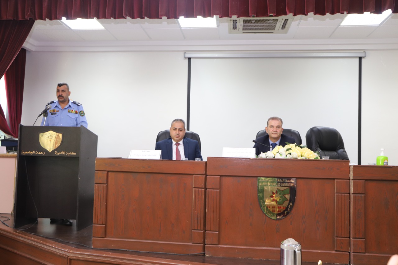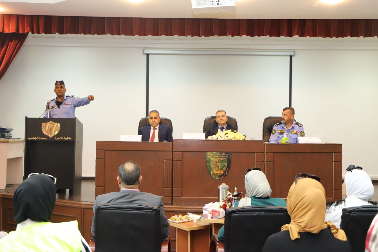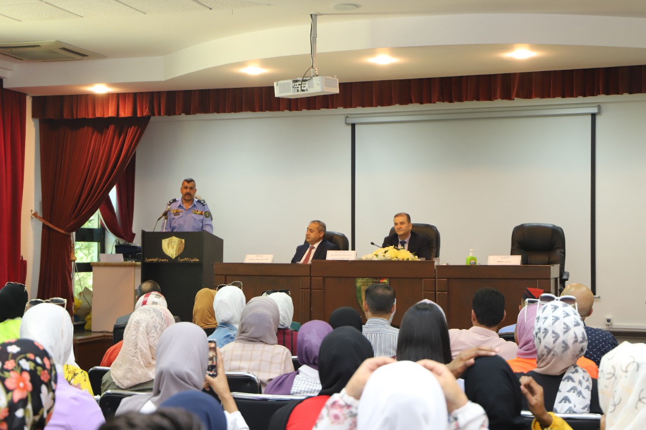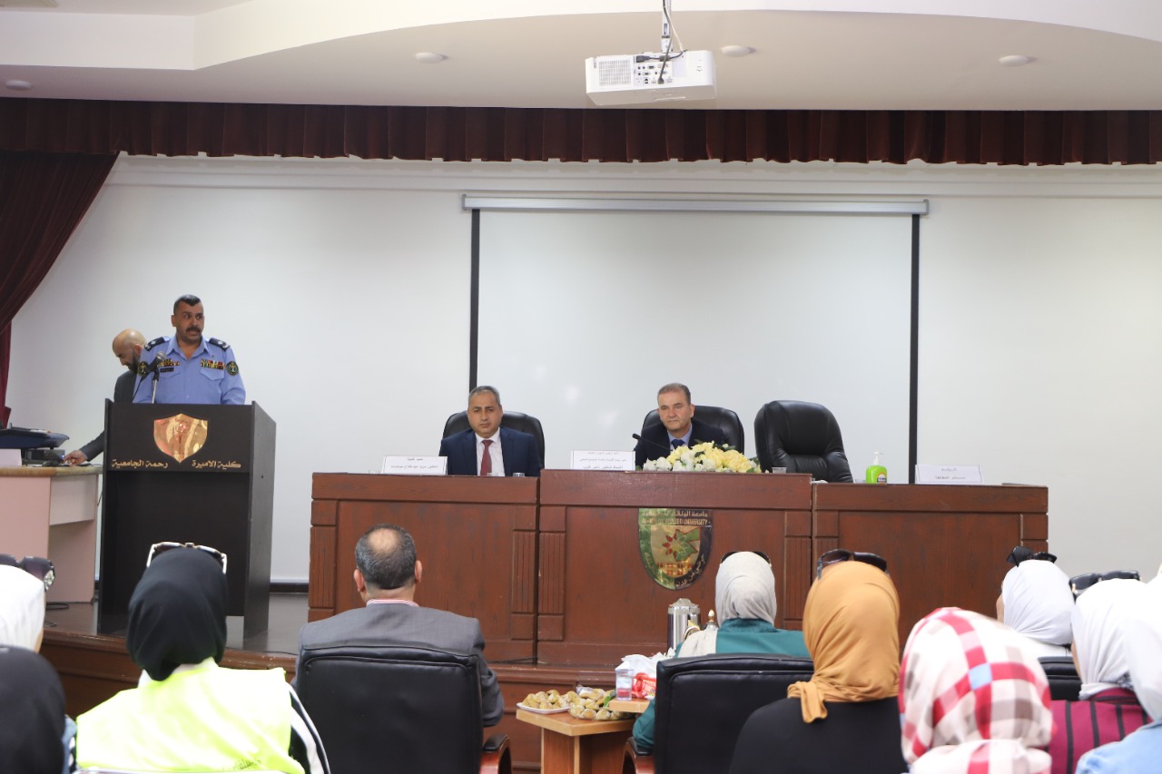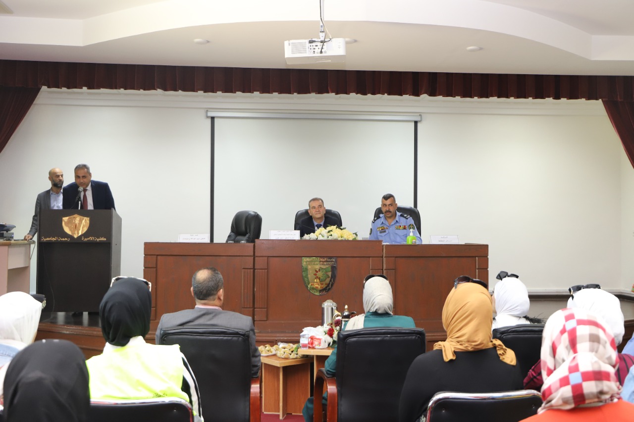 بمناسبة يوم المرور العالمي وبتوجيهات من عطوفة رئيس الجامعة اقامت وحدة التنمية وخدمة المجتمع المحلي بالتعاون مع كلية الأميرة رحمة الجامعية والشرطة المجتمعية وادارة السير والمعهد المروري الاردني محاضرة توعوية بهذه المناسبة بحضور نائب رئيس الجامعة الاستاذ الدكتور ناصر الكلوب مدير وحدة التنمية وخدمة المجتمع المحلي مندوبا عن رئيس الجامعه وعميد كلية الأميرة رحمة الجامعية الدكتور مزيد الحياصات ورئيس قسم ادارة السير في مدينة السلط الرائد سامر المطالقة.