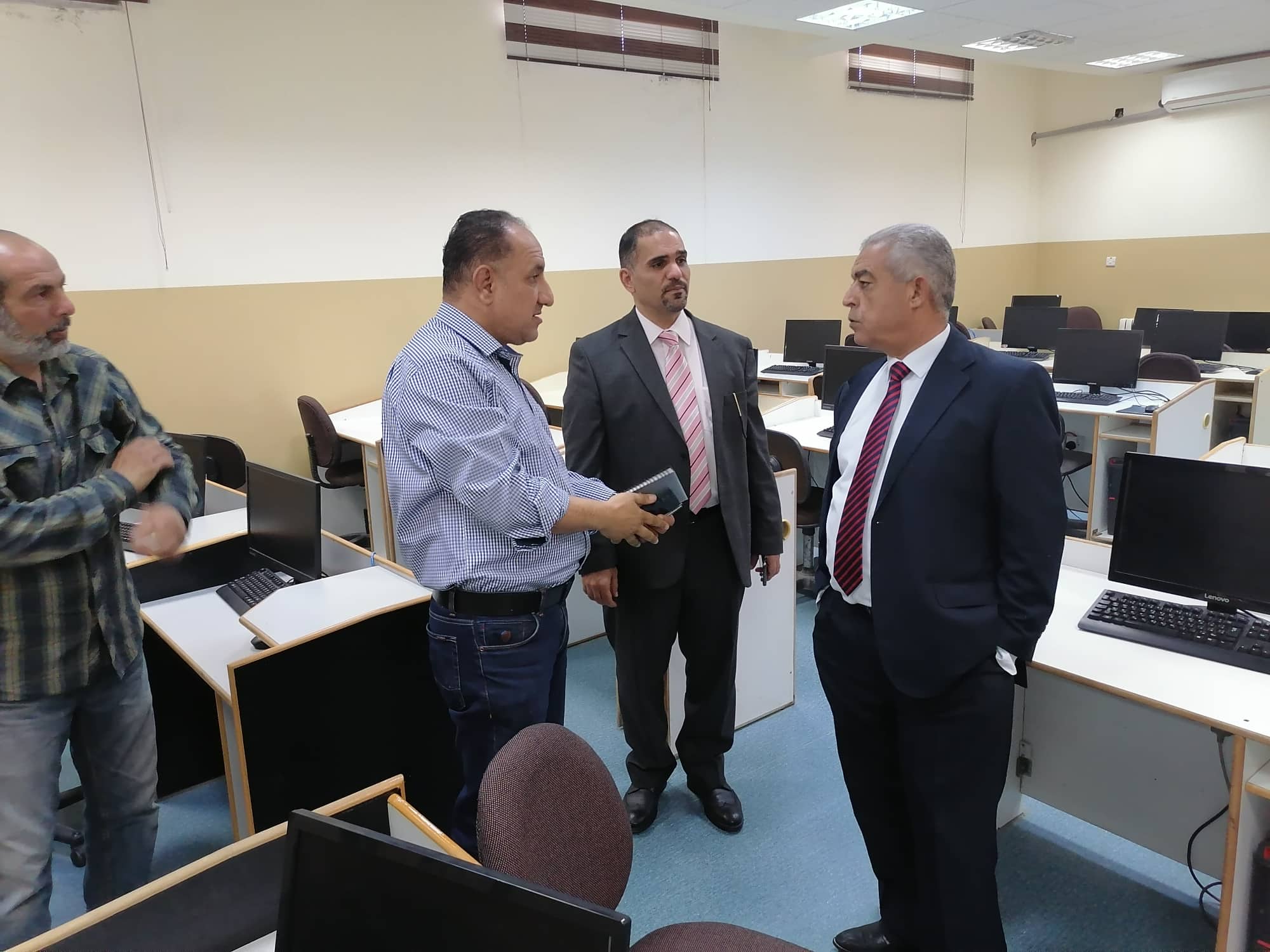 هذا وقد شملت الزيارة جولة ميدانية لمبانى الكلية و قاعاتها ومختبراتها ،بالإضافة إلى زيارة لأقسام الكلية الاكاديمية والادارية و عيادة الكلية وقاعة الشهيد محمد العزام واستمع إلى رؤساء الاقسام الادارية واحتياجاتهم الادارية.