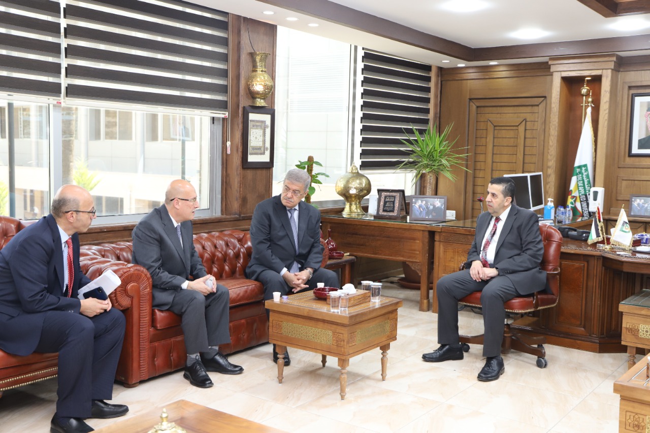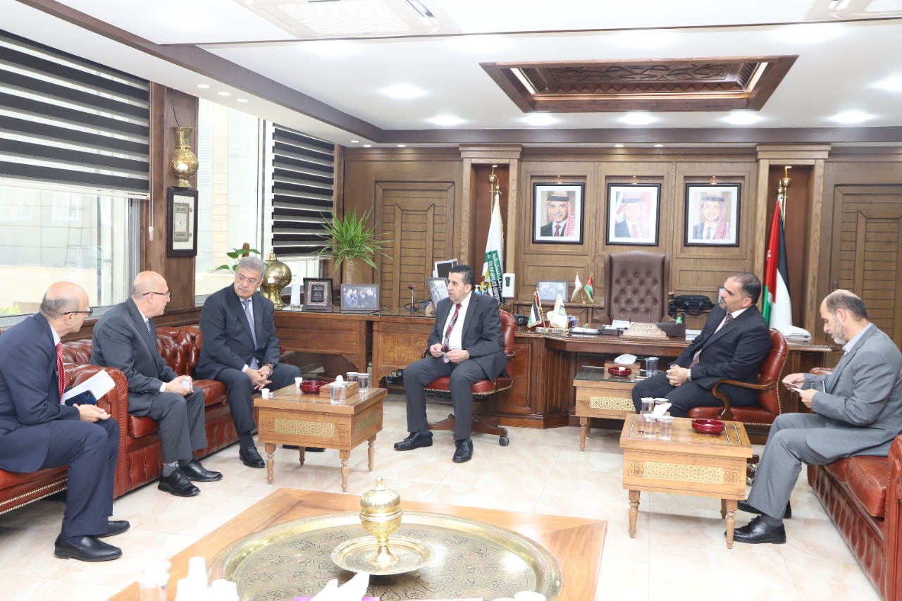 وجرى خلال اللقاء الذي حضره نائب الرئيس للشؤون الإدارية الأستاذ الدكتور خليل الحياري ومدير وحدة الشؤون المالية مهند الخليفات تعزيز التعاون بين الجانبين وبما يخدم العاملين في الجامعة والطلبة.