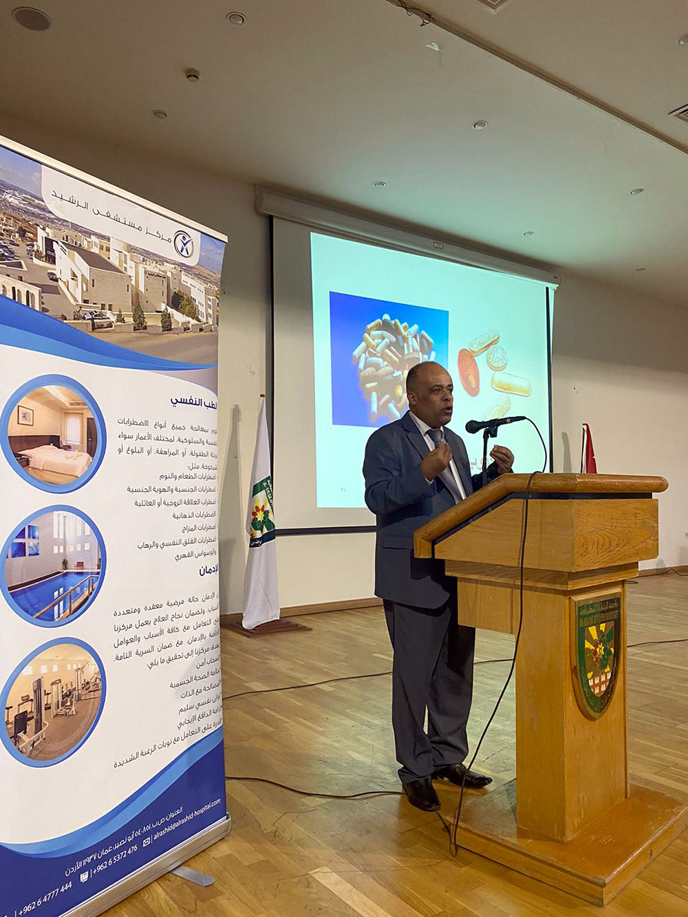 بدوره تحدث أنس الطنطاوي رئيس قسم الإعلام في مستشفى الرشيد للطب النفسي والإدمان عن مخاطر الادمان وأهمية الوقاية منه وطرق علاجه من خلال حوار تفاعلي مع الطلبة .