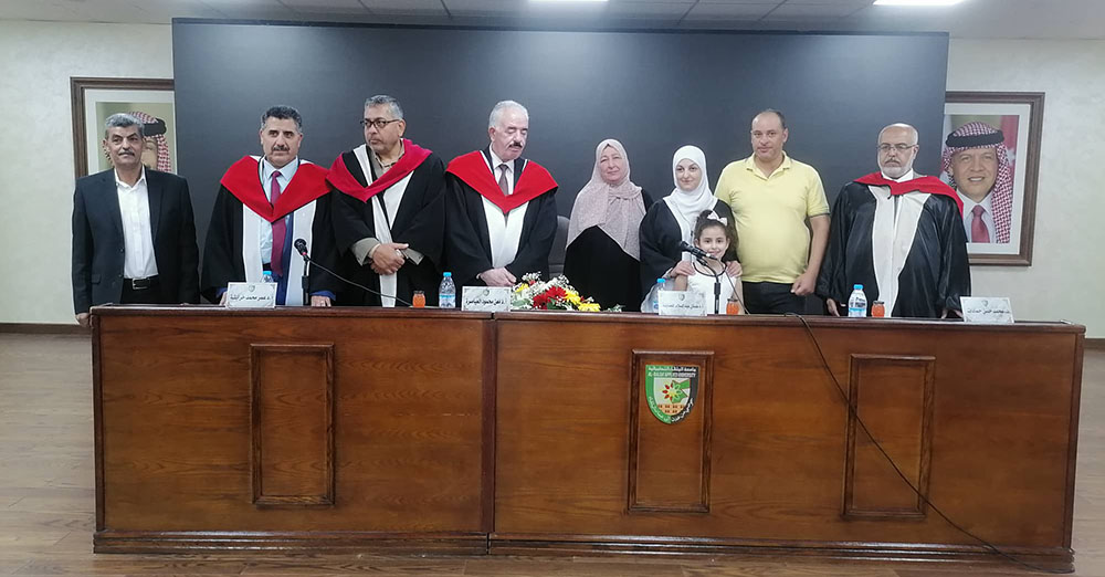 نوقشت اليوم في كلية عجلون الجامعية /جامعة البلقاء التطبيقية رسالتي ماجستيرالاولى للطالبة ولاء محمد عضيبات في كلية عجلون الجامعية /جامعة البلقاء التطبيقية بعنوان(درجة توافر عناصرالمدرسة الفعالة في المدارس الحكومية الثانوية التابعة لإقليم الشمال وعلاقتها بتحسين الاداء الوظيفي للمعلمين من وجهة نظرهم )