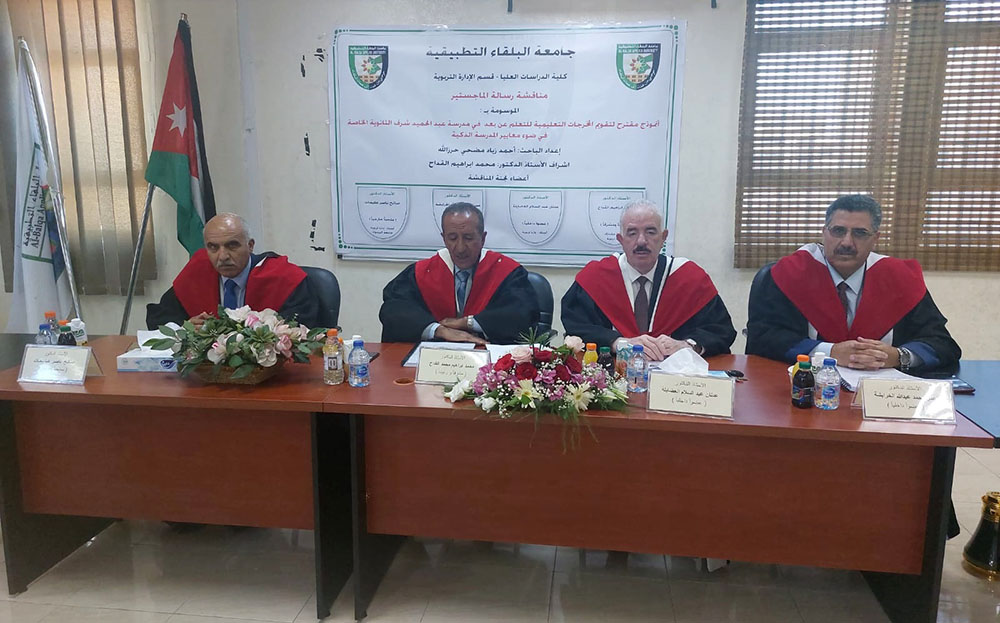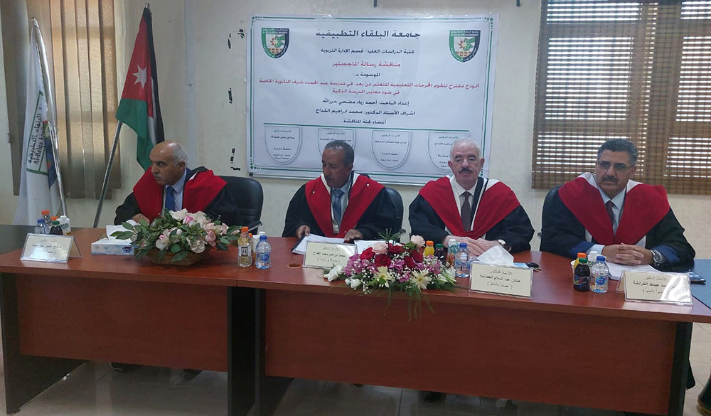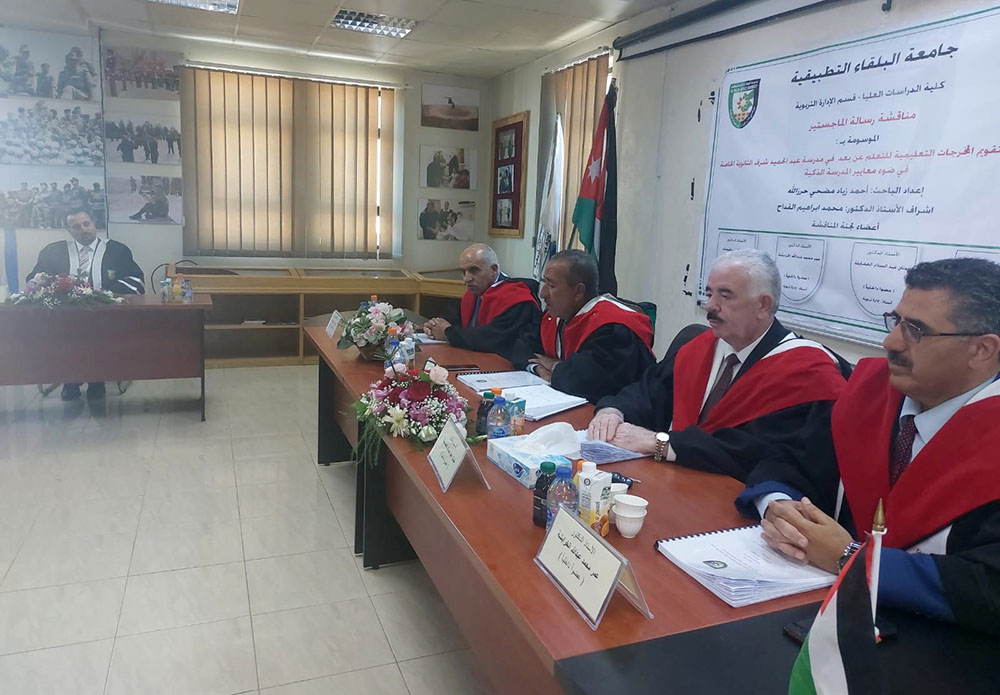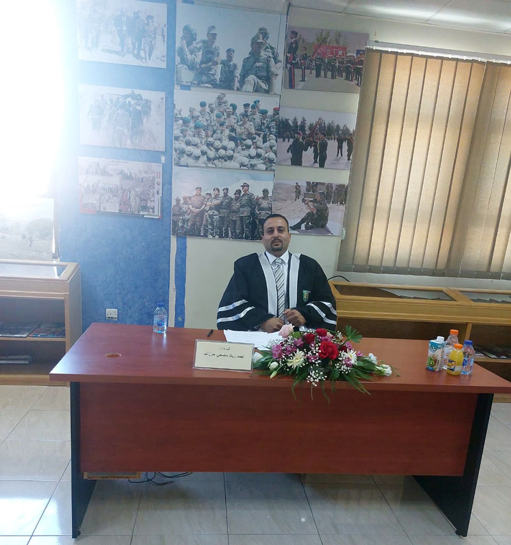 مناقشة رسالة ماجستير للطالب أحمد زياد مضحي حرزالله في كلية الأميرة عالية الجامعية