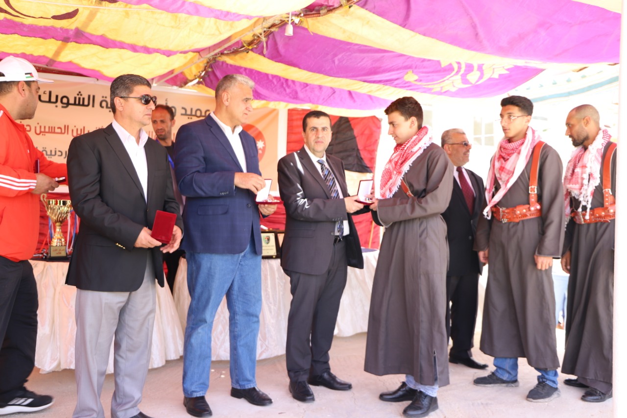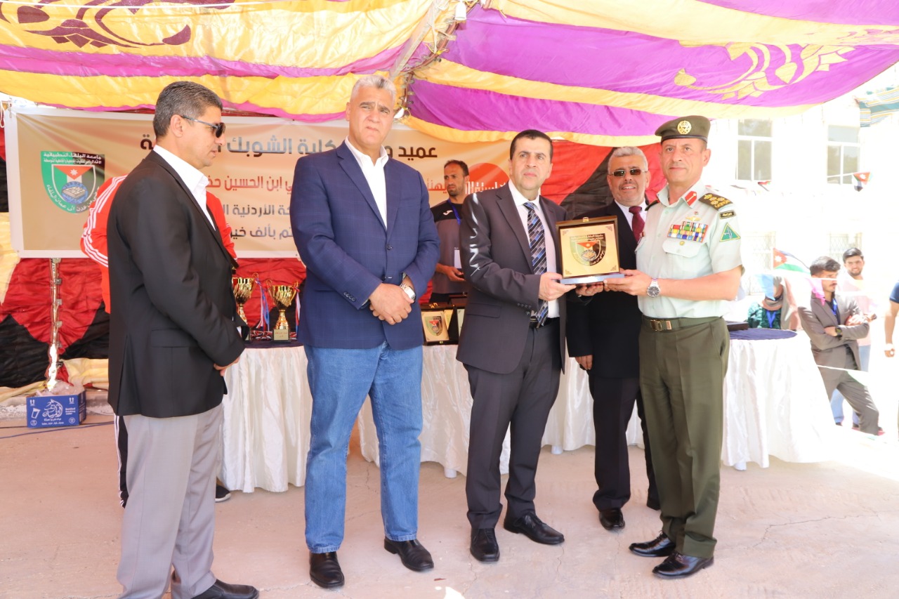 رعى رئيس جامعة البلقاء التطبيقية الاستاذ الدكتور احمد فخري العجلوني فعاليات سباق اختراق الضاحية والاحتفال الذي اقامته عمادة شوون الطلبة بالتعاون مع كلية الشوبك الجامعية بمناسبة احتفالات الجامعة بالعيد السادس والسبعين لاستقلال المملكة بحضور قائد منطقة اقليم الجنوب العسكرية العميد عبد الباسط الشرع ومتصرف لواء الشوبك ابراهيم انجادات ونائب رئيس الجامعة للشؤون الكليات الاستاذ الدكتور ناصر الكلوب وعميد شؤون الطلبه الدكتور عزيز الرحامنه وعمداء كليات الشوبك ومعان والاميرة رحمة والعقبة الجامعية وأعضاء اللجنتين الفنية الادارية للاتحاد الرياضي للكليات الجامعية وفعاليات رسمية وشعبية من اقليم البتراء ووادي موسى ومحافظة معان وقضاء الشوبك.