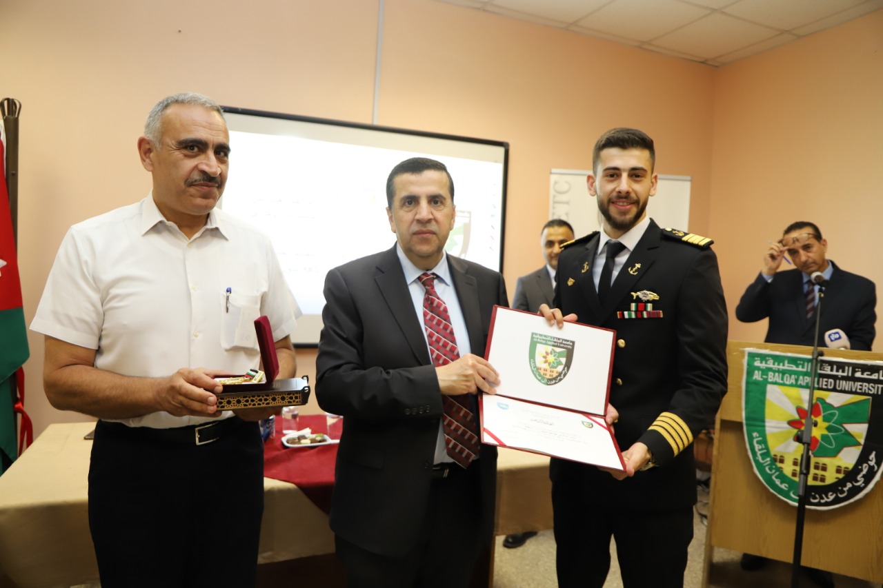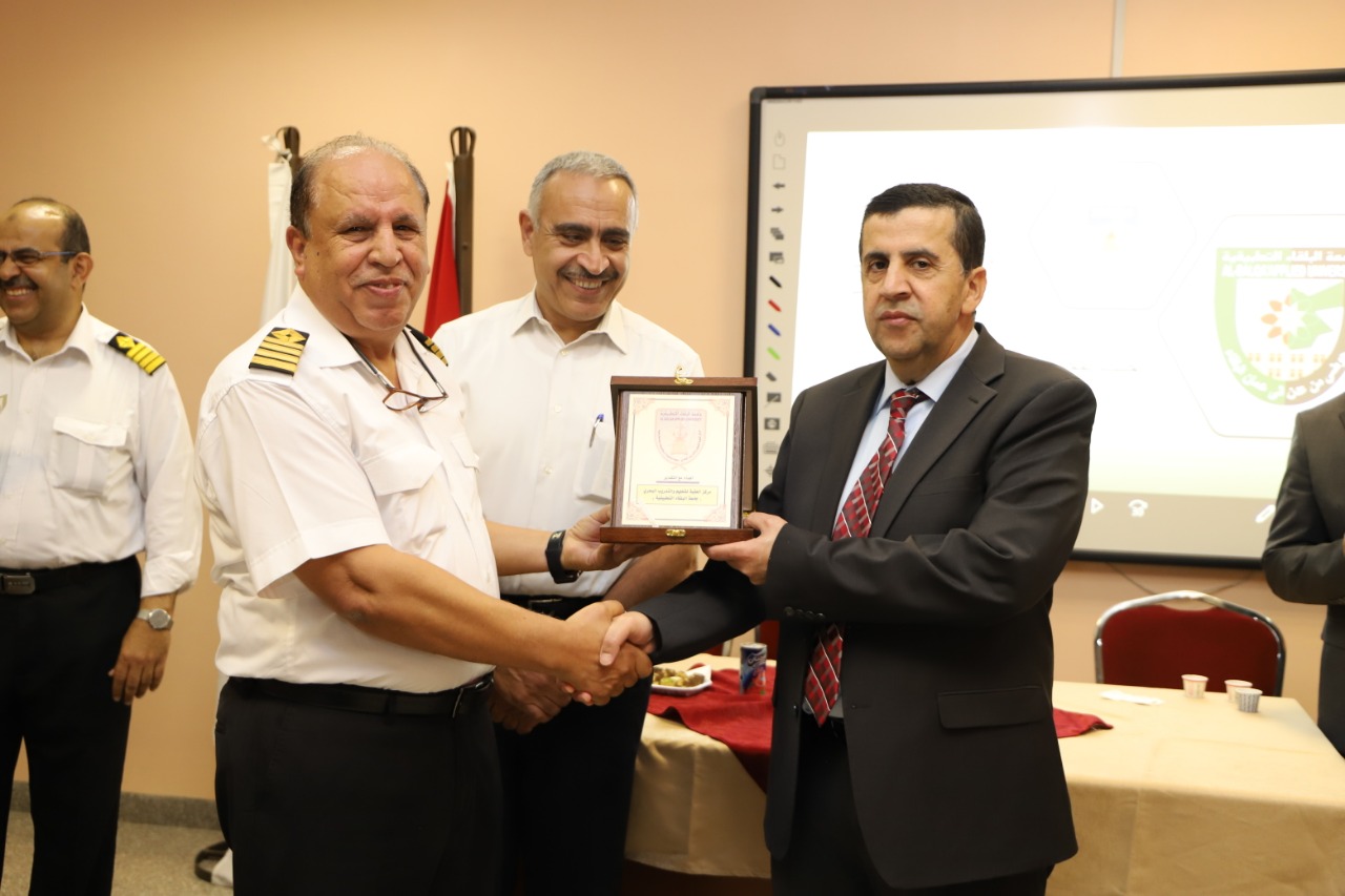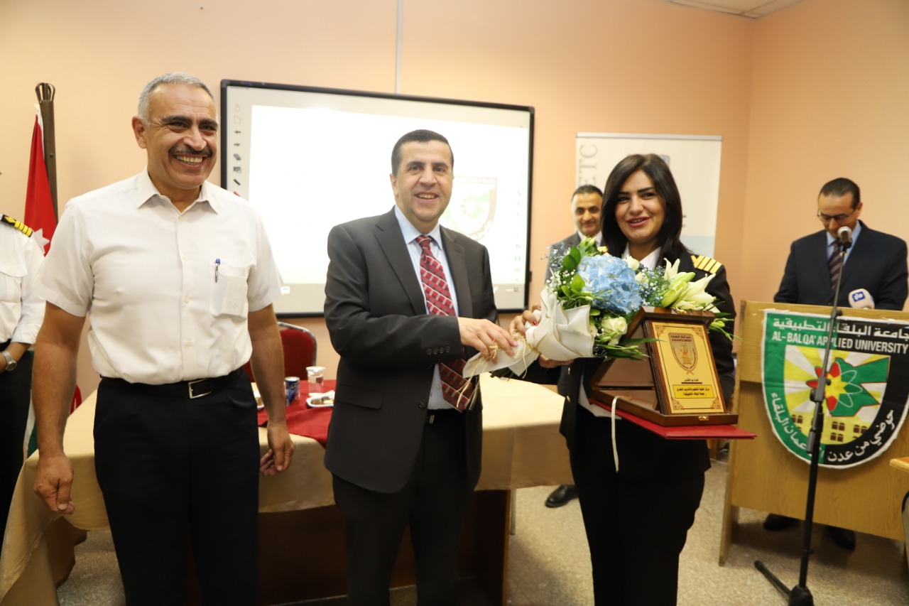 وقام رئيس الجامعة الدكتور العجلوني بتكريم الكابتن حنان ابو عثمان اول خريجة أردنية من مركز العقبة للتعليم والتدريب البحري متمنيا لها التوفيق في حياتها العملية.
