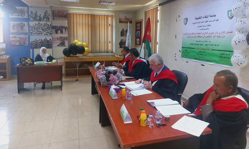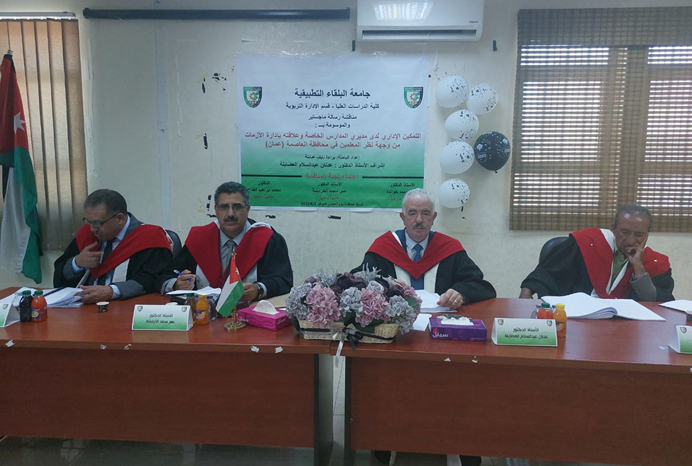 مناقشة رسالة ماجستيرللطالبة براءة نايف موسى عبابنة في كلية الأميرة عالية الجامعية