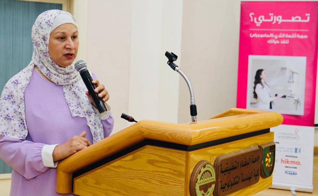 نظمت الدائرة الطبية /كلية الهندسة التكنولوجية /جامعة البلقاء التطبيقية بالتعاون مع البرنامج الأردني لسرطان الثدي بقيادة ودعم مؤسسة ومركز الحسين للسرطان بحضور الدكتور احمد سلامة عواد عميد الكلية والدكتور خلدون ابوالغنم مدير الدائرة الطبية محاضرة توعوية حول سرطان الثدي وعن الكشف المبكر عن سرطان الثدي القاها المثقفة هند