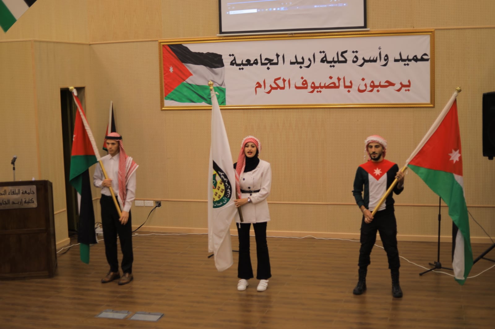 مندوباً عن رئيس جامعة البلقاء التطبيقية الأستاذ الدكتور أحمد فخري العجلوني رعى عميد كلية اربد الجامعية الأستاذ الدكتور عبد المطلب خضراوي الاحتفال الذي أقامته كلية اربد الجامعية/ جامعة البلقاء التطبيقية بمناسبة عيد الاستقلال بحضور عدد من نواب مدينة اربد ومدراء الدوائر والمؤسسات المدنية والعسكرية والقطاع الخاص وأسرة الكلية .