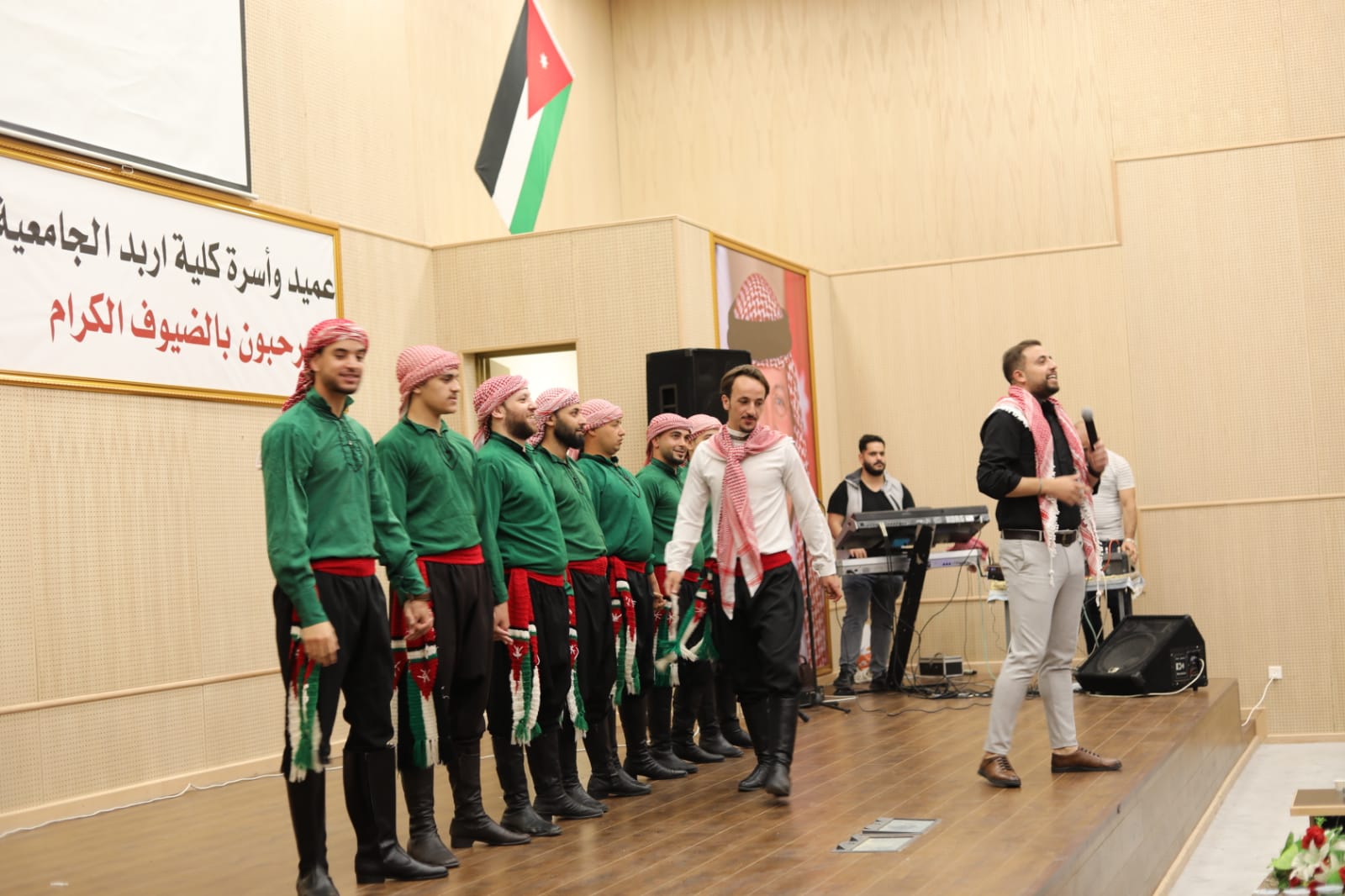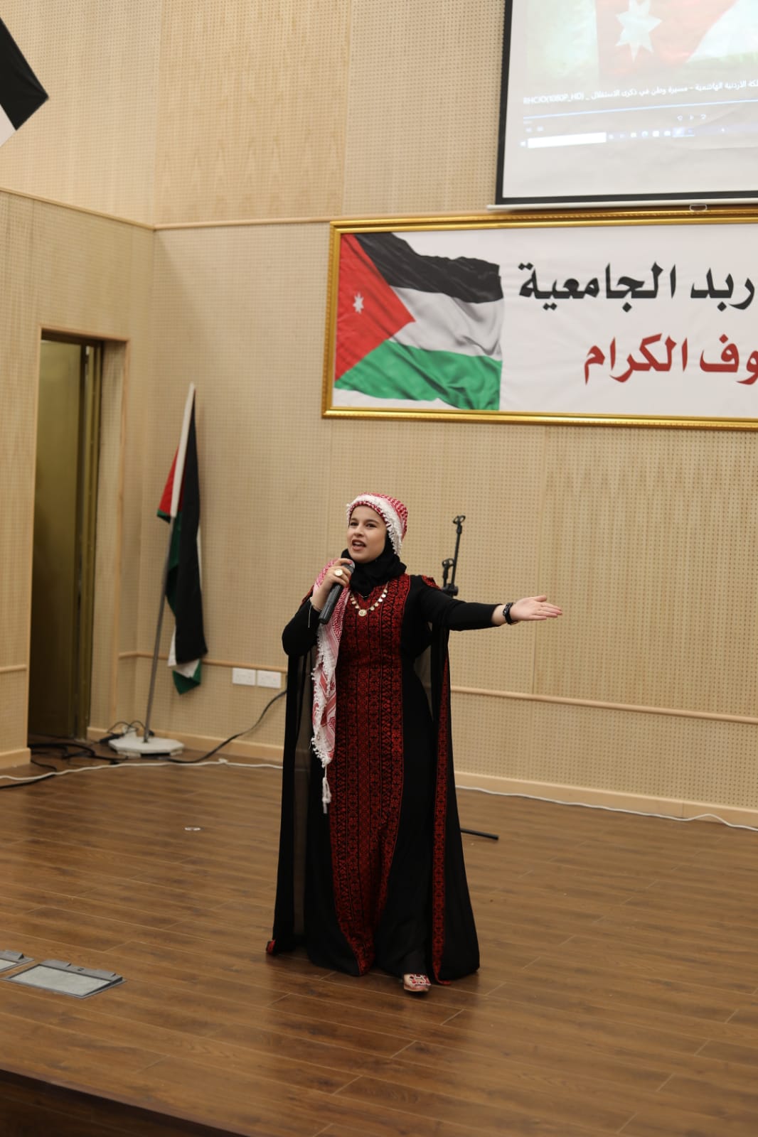 و تضمن الاحتفال أغاني وطنية وقصائد شعرية تغنت بالوطن والقائد من آداء كورال كلية اربد الجامعية وفرقة الرمثا للفنون الشعبية .