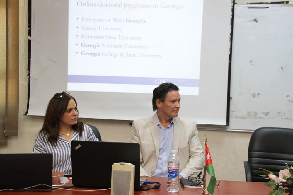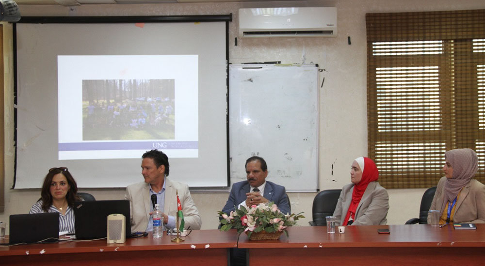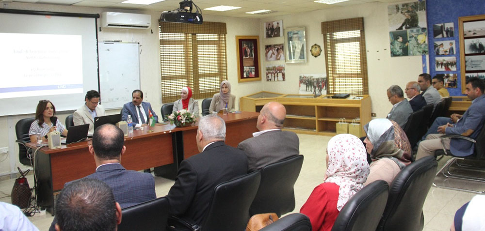 نظمت وحدة التعاون والعلاقات الدولية في جامعة البلقاء التطبيقية ورشة تعريفيه بأساليب تدريس اللغة الانجليزية والمنح من الجامعات الامريكية لأعضاء الهيئة التدريسية والطلبة في كلية الاميرة عالية الجامعية بحضور عميد كلية الاميرة عالية الجامعية الدكتور ناجي السعايدة ومدير وحدة التعاون والعلاقات الدولية الدكتورة دانا محادين ومدير مركز اللغات الدكتور ناجي قبيلات ومديرة دائرة المشاريع الدولية في وحدة التعاون والعلاقات الدولية الدكتورة ختام الشريدة وذلك في القاعة الهاشمية في الكلية