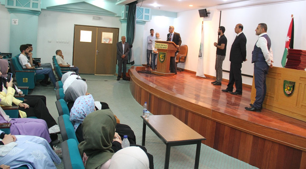 نظمت عمادة شؤون الطلبة في جامعة البلقاء التطبيقية من خلال نادي نبض لذوي الاعاقه الطلابي حفل تخريج الطلبة المشاركين في دورة لغة الاشارة بحضور عميد شؤون الطلبة الدكتور عزيز الرحامنه ونائب العميد الدكتور نضال الغفري وذلك على مسرح المكتبة المركزية في الجامعة .