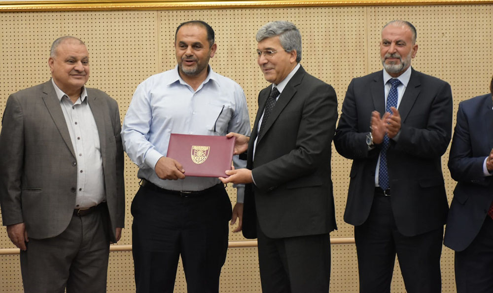 عميد كلية إربد الجامعية يسلم الزميل حكم العتوم شهادة الموظف المثالي عن شهر حزيران