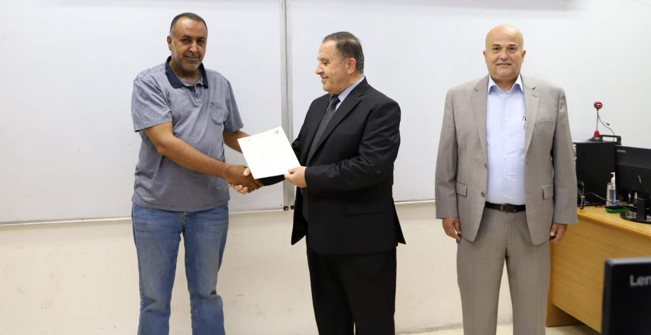 رعى نائب رئيس جامعة البلقاء التطبيقية للشؤون الأكاديمية الأستاذ الدكتور زكريا القضاة حفل ختام الورشة التدريبية في أمن تكنولوجيا المعلومات(IT Security ) والتي نظمها قسم التدريب في مركز الحاسوب بحضور مدير المركز الدكتور عمر الزعبي.