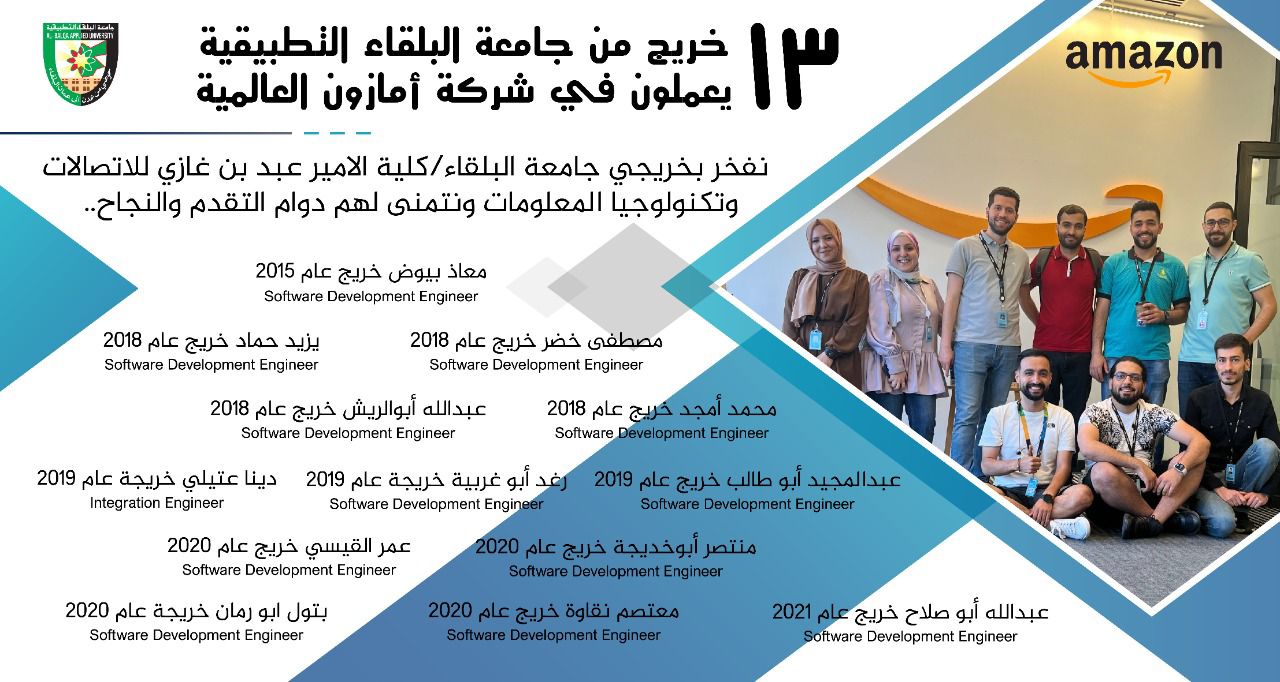 13 خريج من جامعة البلقاء التطبيقيه يعملون في شركة أمازون العالميه