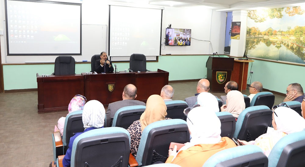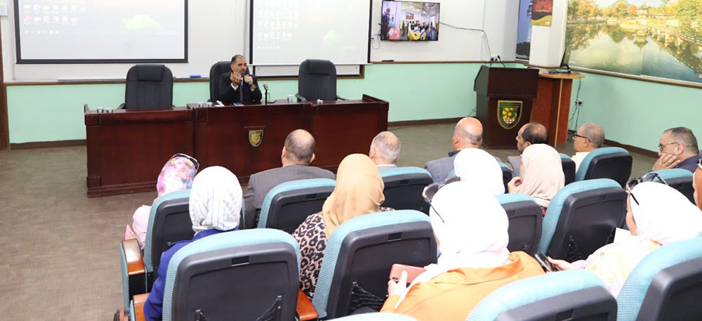 وفي بداية اللقاء رحب نائب رئيس الجامعة بالحضور شاكرا ومعبرا عن اعتزاز إدارة الجامعة بالجهود المخلصة التي تٌبذل والعمل بروح الفريق الواحد خدمة لمسيرة الجامعة وتطورها وتقدمها في كافة الميادين.