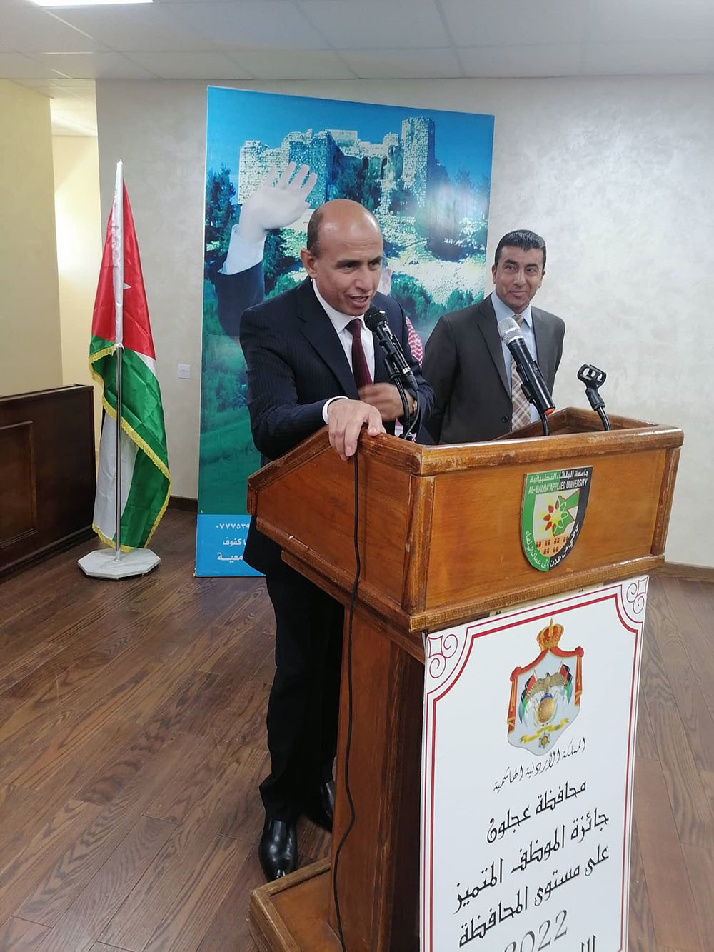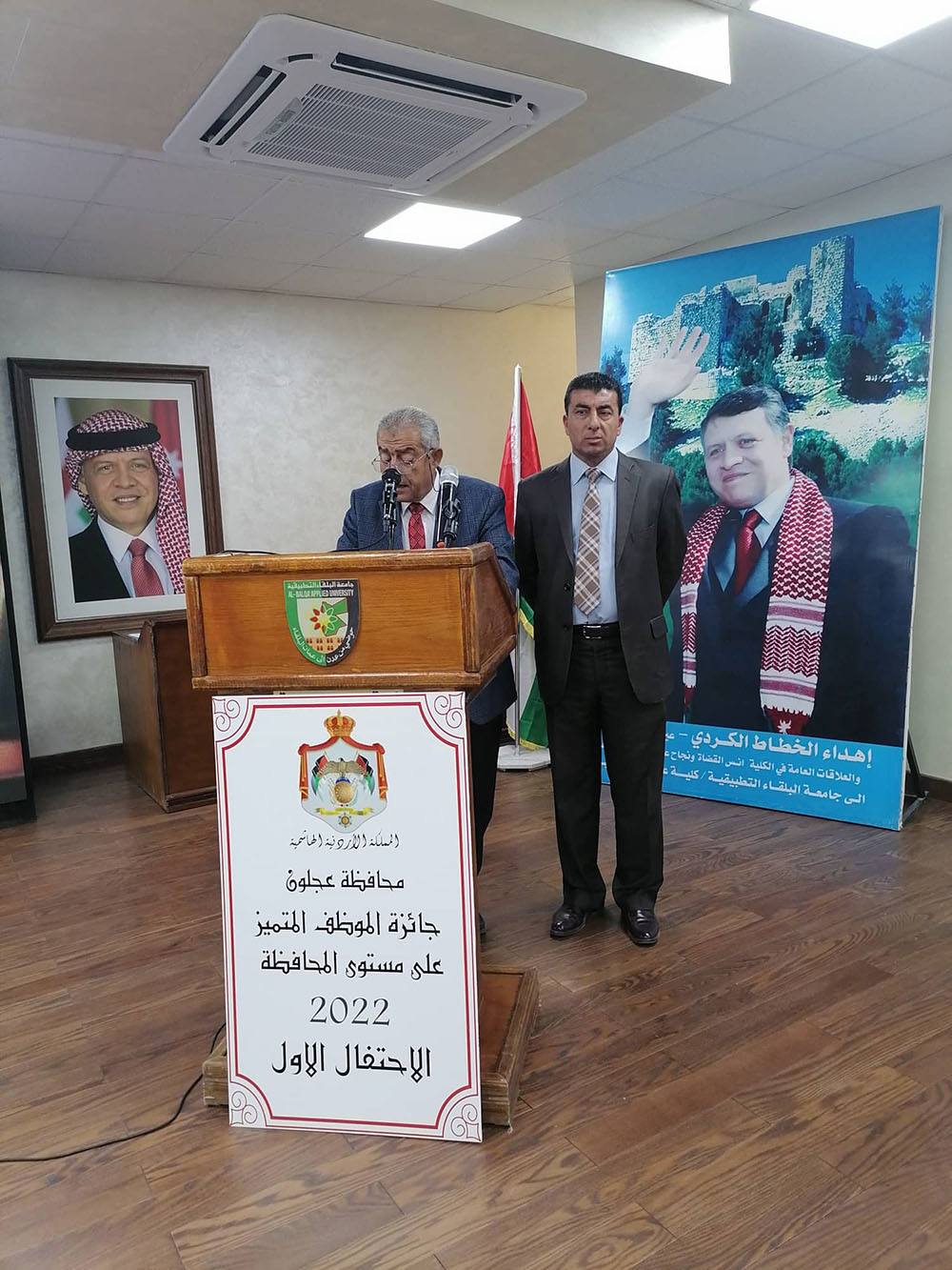 كرم محافظ عجلون الدكتور قبلان الشريف الفائزين بجائزة الموظف المتميز لعام 2022 من المحافظة بحضور نائبه الدكتور علي اللوزي وعميد كلية عجلون الجامعية /جامعة البلقاء التطبيقية الاستاذ الدكتور حامد الدعوم ومديري الدوائر الرسمية والمرشحين من قبل دوائرهم ومن قبل لجنة التقييم المشكلة لهذه الغاية وذلك خلال الاحتفال الكبير الذي أقيم في قاعة كلية عجلون الجامعية ( الشهيد محمد العزام) برعاية المحافظ الشريف.