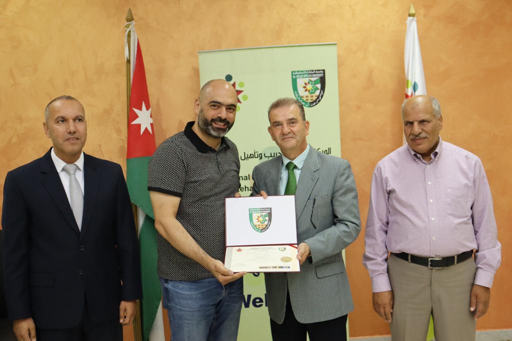 وفي نهاية الاختتام سلم الأستاذ الدكتور ناصر كلوب و مدير المركز الشهادات للمشاركين و شهادة شكر للمدرب زيد حياصات تقديراً لجهوده في تنفيذ هذه الدورة.