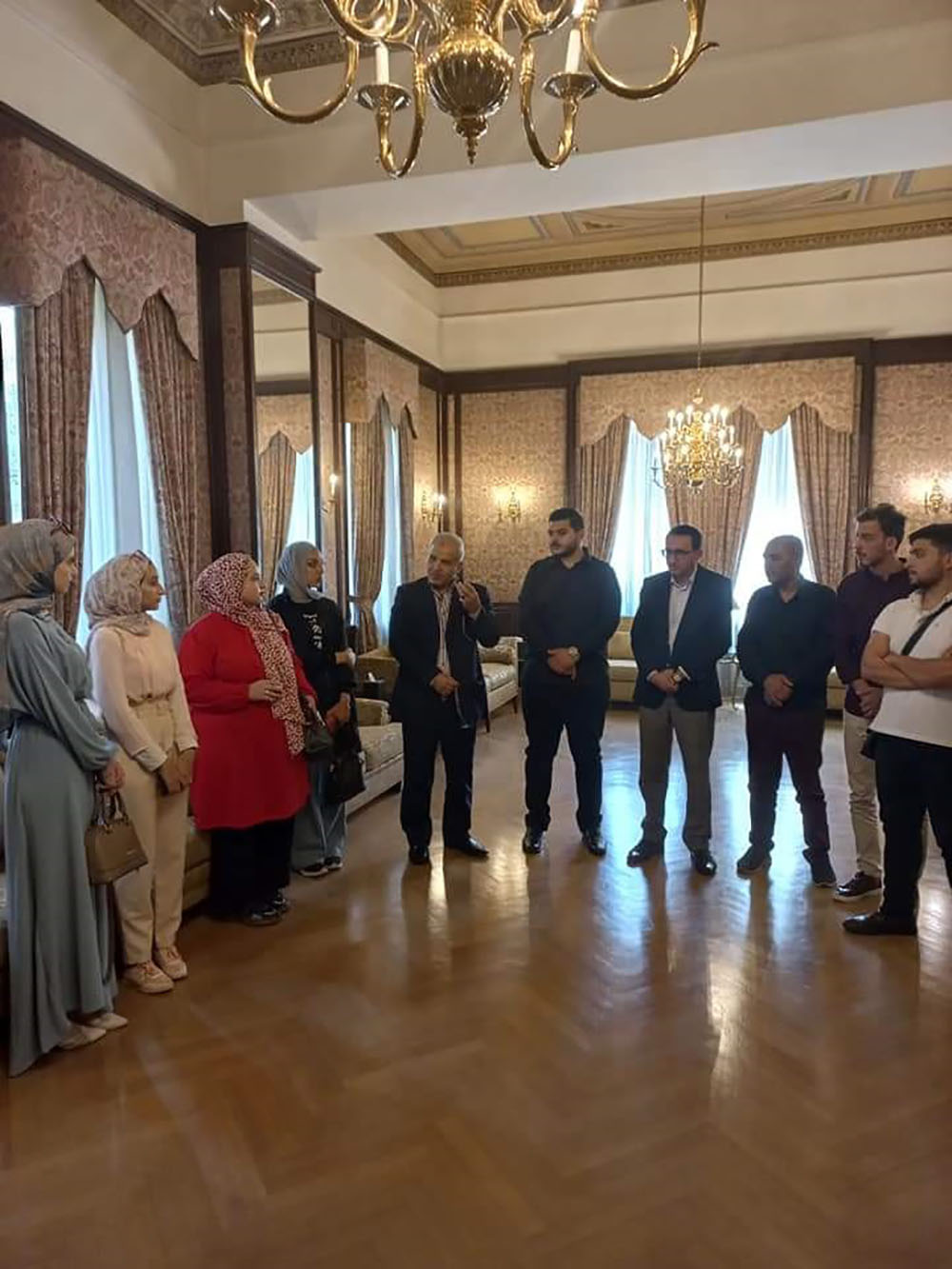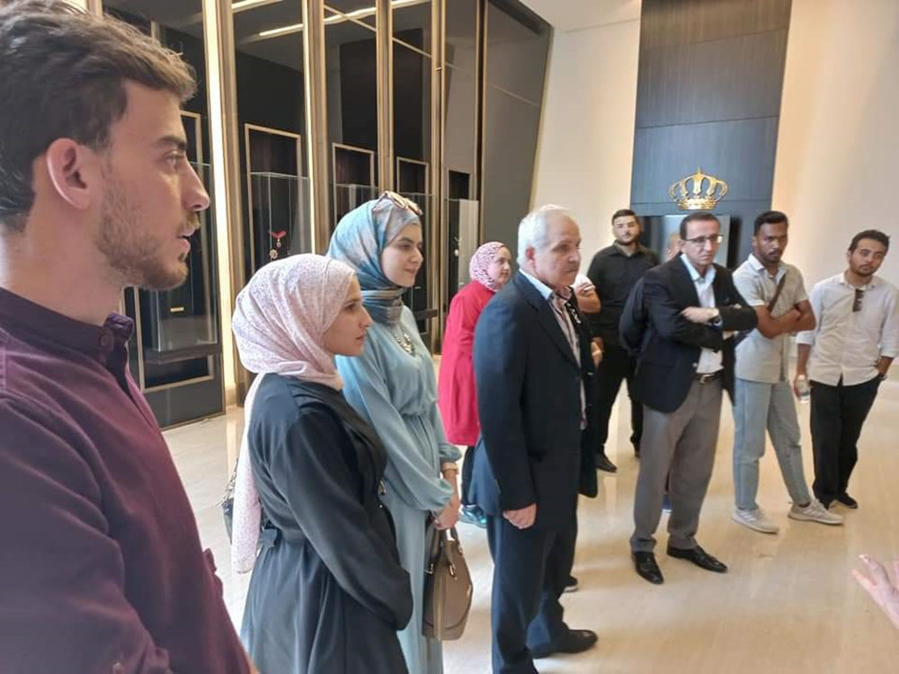 وخلال الزيارة التي رافقهم فيها مساعد العميد للشؤون الطلابية الدكتور ابراهيم الشياب ورئيس قسم العلاقات العامة الاستاذ علي غرايبة تجول الوفد في أنحاء الديوان الملكي الهاشمي العامر واستمعوا الى ايجاز قدمه اعضاء من وحدة الاعلام والاتصال في الديوان ونبذه تاريخية عن الديوان الملكي الهاشمي العامر وقصر رغدان العامر منذ بدايات الإمارة وحتى يومنا هذا.