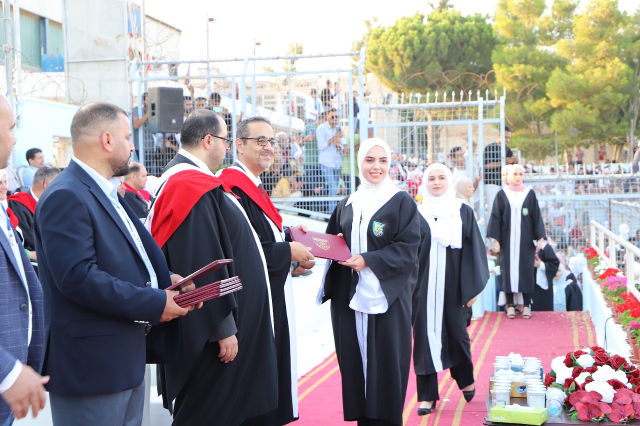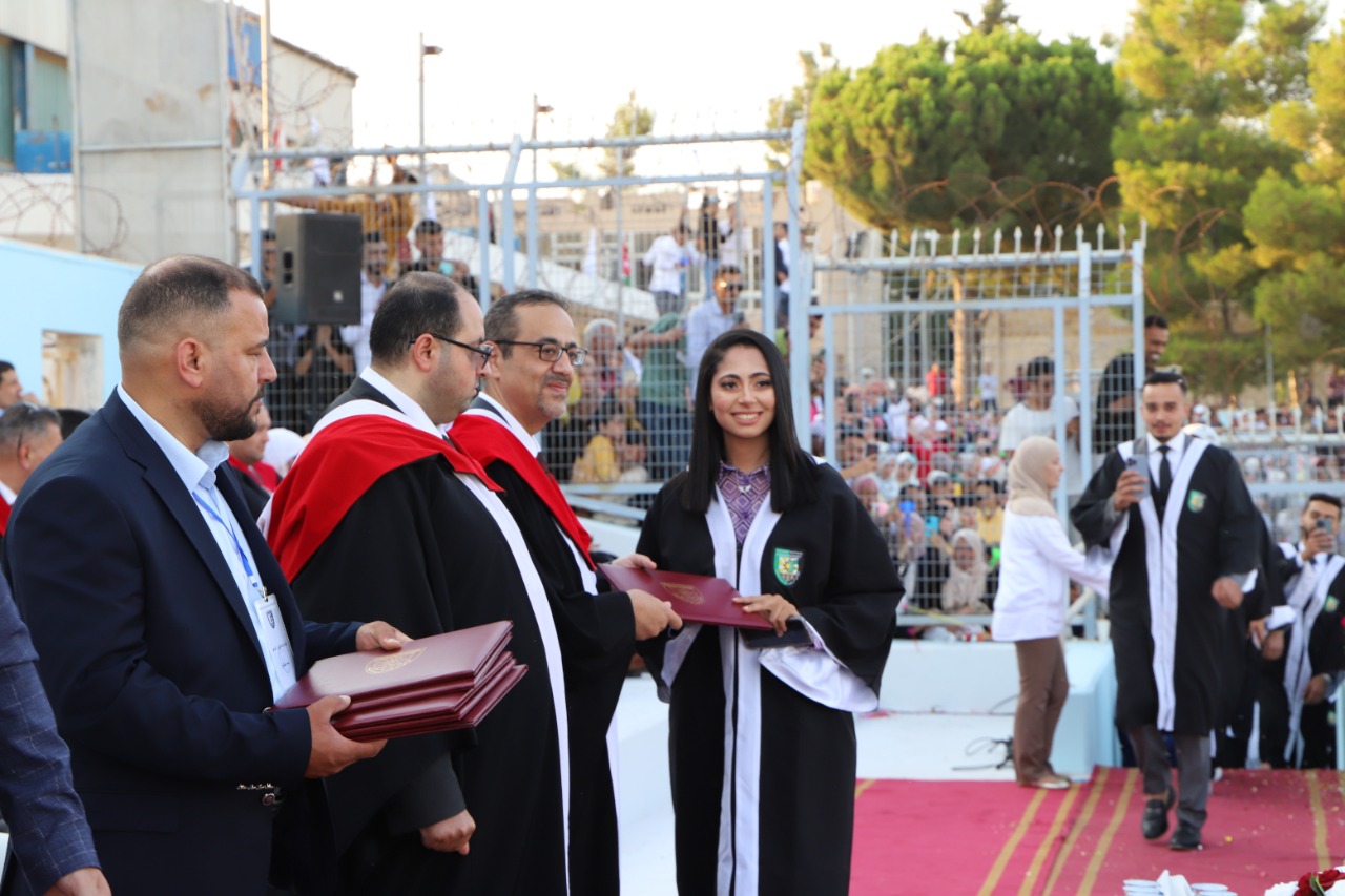 وقدم الاستاذ الدكتور هيثم الشبلي تحيات وتهاني رئيس وأسرة جامعة البلقاء التطبيقية للطلبة الخريجين وذويهم معبرا عن اعتزاز الجامعة بهم متمنيا لهم التوفيق والسداد في مستقبلهم كما حث الشبلي الطلبة الخريجين بأن يكونوا سفراء لجامعة البلقاء التطبيقية يعكسون سمعتها اينما حلت بهم الرحال .