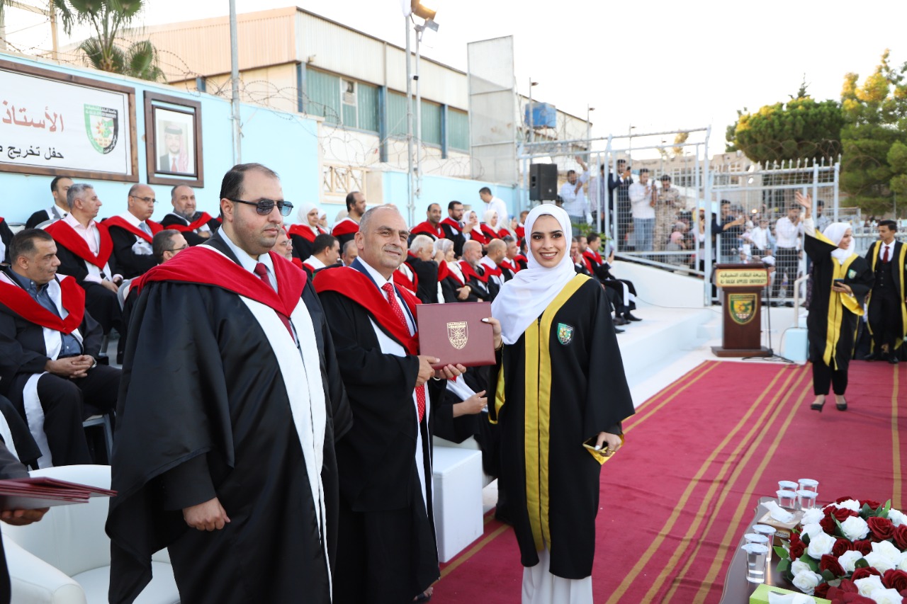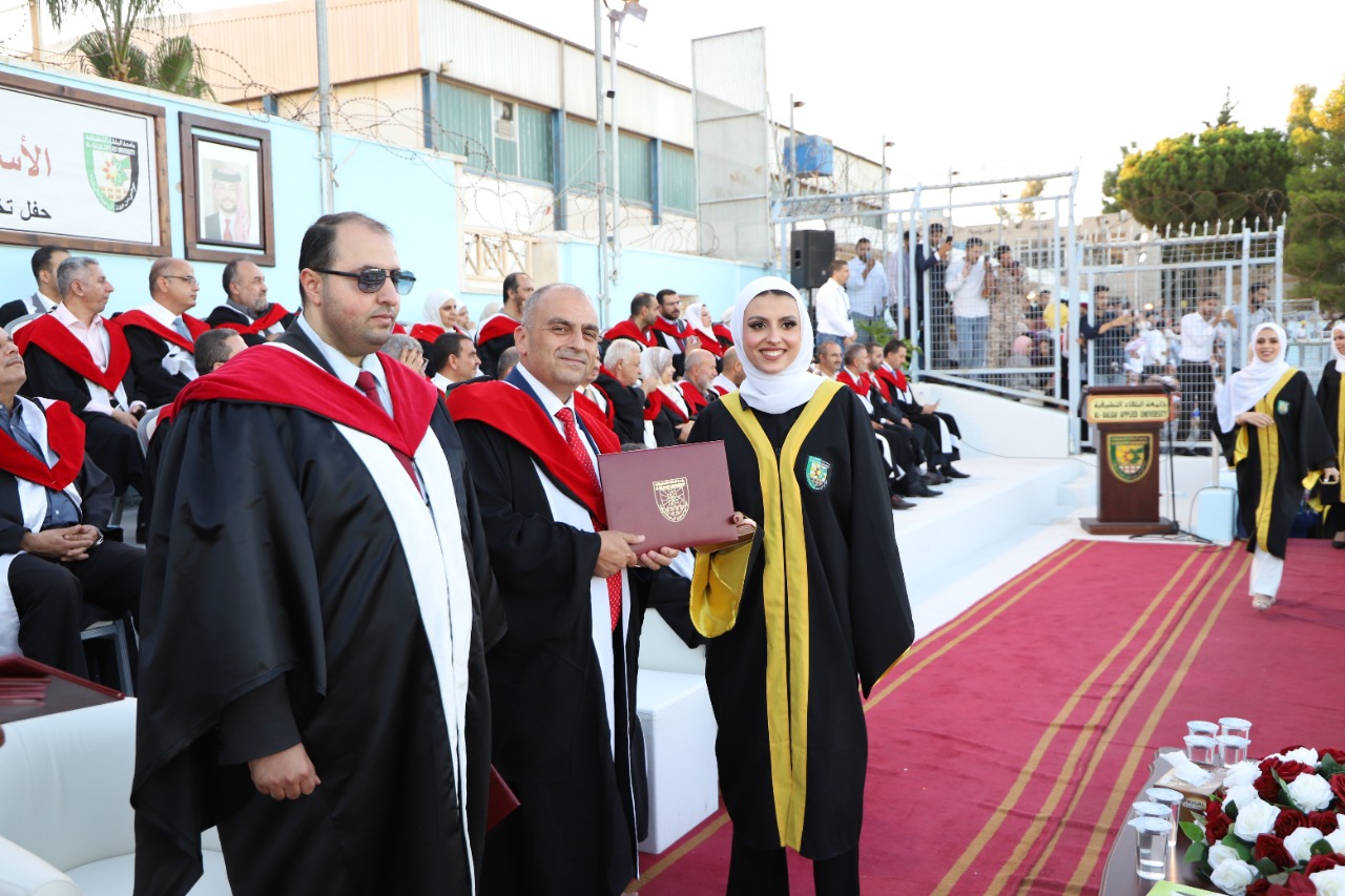 مندوبا عن رئيس جامعة البلقاء التطبيقية الاستاذ الدكتور أحمد فخري العجلوني رعى كل من عميدة كلية العلوم الاستاذ الدكتورة هاله جبر وعميد كلية الاميرة رحمة الجامعية الدكتور مزيد حياصات وعميد كلية السلط التقنية الاستاذ الدكتور عمر الحياصات حفل تخريج طلبة كليات العلوم ورحمة الجامعية والسلط التقنية بحضور عميد شؤون الطلبة الدكتور عزيز الرحامنه وأعضاء الهيئة التدريسية في الكليات الثلاث وجمع غفير من ذوي الطلبة الخريجين وذلك على ملعب الجامعة الرئيسي في السلط.