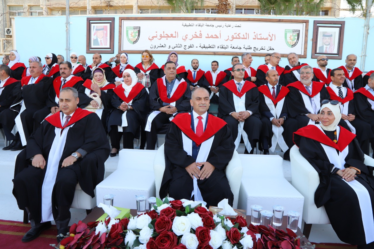 وقدم عمداء الكليات التهاني والتبريك باسم رئيس جامعة البلقاء التطبيقية الاستاذ الدكتور احمد فخري العجلوني الى الطلبة الخريجين متمنين لهم التوفيق والسداد في قادم أيامهم وهم يخوضون غمار تجارب جديدة في الحياة العملية وسوف العمل، مؤكدين على ان جامعة البلقاء التطبيقية تعتز وتفخر على الدوام بجميع طلبتها وفي جميع كلياتها وتخصصاتها، وتحرص كل الحرص على تقديم كل ما هو افضل لطلبتها وبشكل مثالي و مرموق حرصا منها على أن يكونوا فرسان علم وميدان متمتعين بالمهارة والكفاية والاقتدار ونبراسا يضاء من خلاله دوما بريق وسمعة جامعة البلقاء التطبيقية شمس الجامعات الاردنية والمنتشرة في ربوع ومساحات الوطن الغالي.