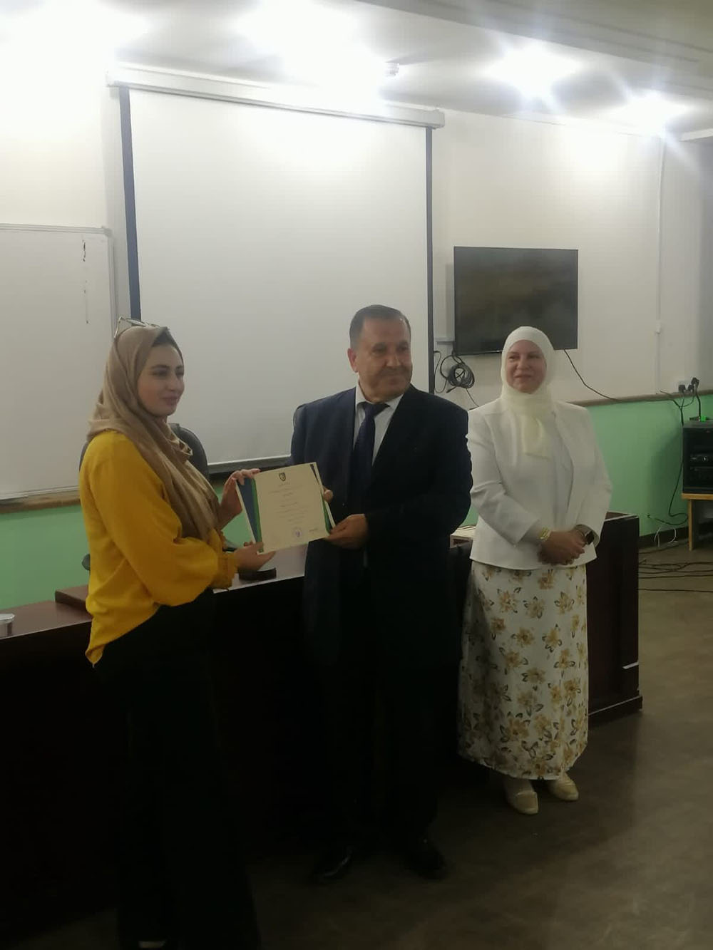 وفي ختام الحفل سلم الدكتور القضاة الشهادات على المشاركين .