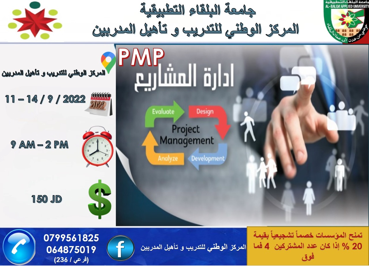 يعلن المركز الوطني للتدريب وتأهيل المدربين / جامعة البلقاء التطبيقية عن عقد دورة إدارة المشاريع pmp