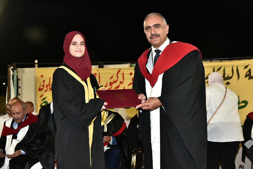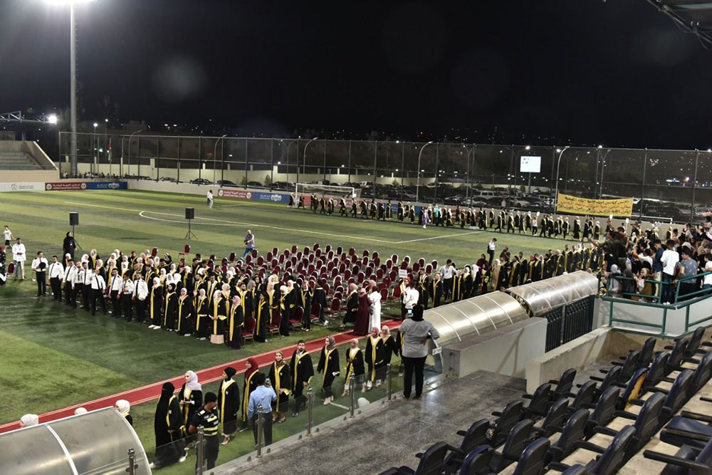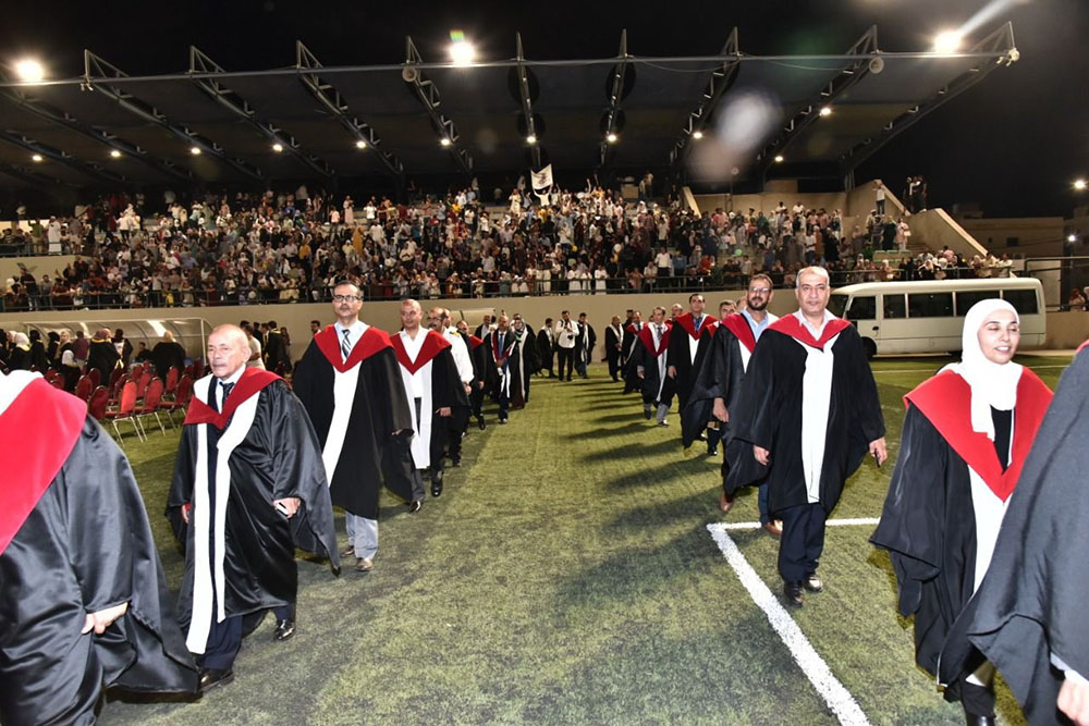 مندوبا عن رئيس جامعة البلقاء التطبيقية الاستاذ الدكتور احمد فخري العجلوني رعى عميد كلية العقبة الجامعية الدكتور حسان شاهين حفل تخريج الفوج التاسع عشر من طلبة الشهادة الجامعية الاولى البكالوريوس والفوج العشرين من طلبة الشهادة الجامعية المتوسطة الدبلوم بحضور اعضاء الهيئة التدريسية وذوي الطلبة الخريجين وذلك على ملعب العقبة الرئيسي.