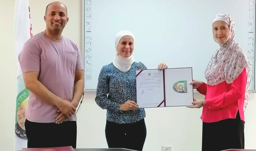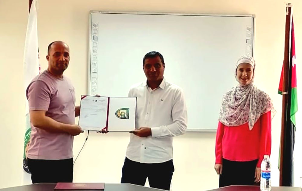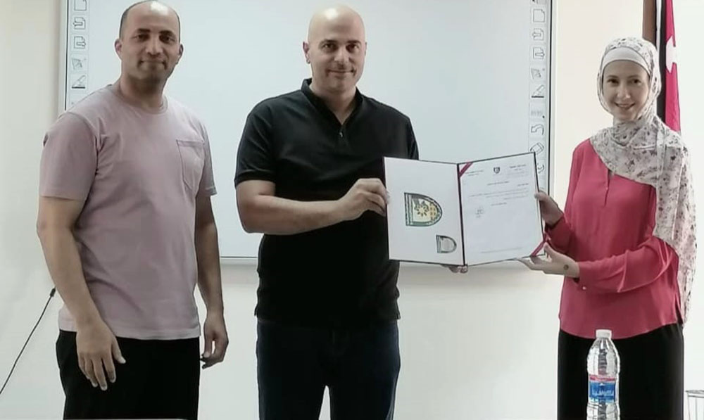 كرّمَ مديرُ مركزِ اللُّغات د. ناجي القبيلات ومساعدتُهُ د. شيرين الكردي في لقاءٍ احتفاليٍّ يوم أَمسِ الأحد كُلًّا من الزُّملاء: الموظَّفة المهندسة عُريب الحياصات مديرة الدائرة الإداريَّة، والموظَّف فايز الشرعه رئيس قسم اللُّغات، والموظَّف أحمد طه القرنه رئيس قسم تكنولوجيا المعلومات والامتحانات.
