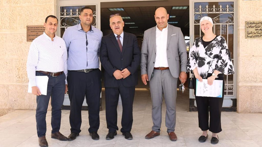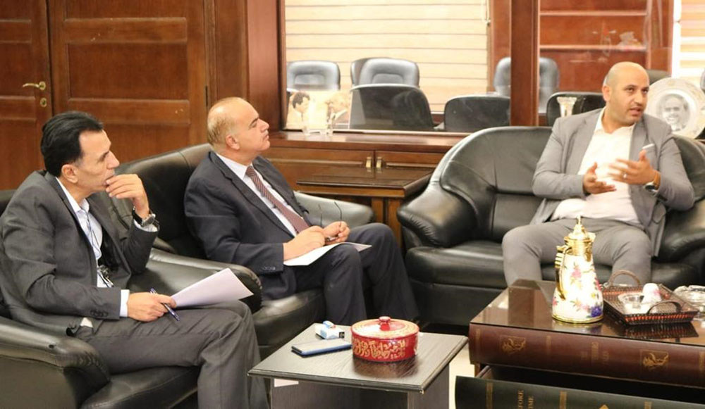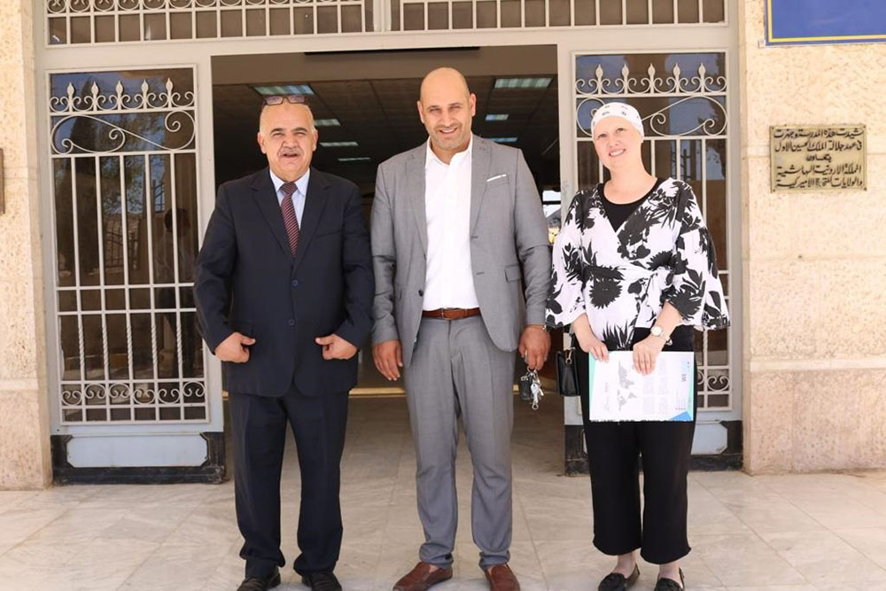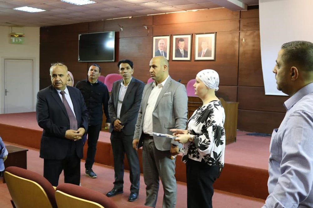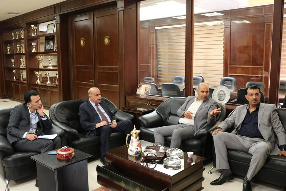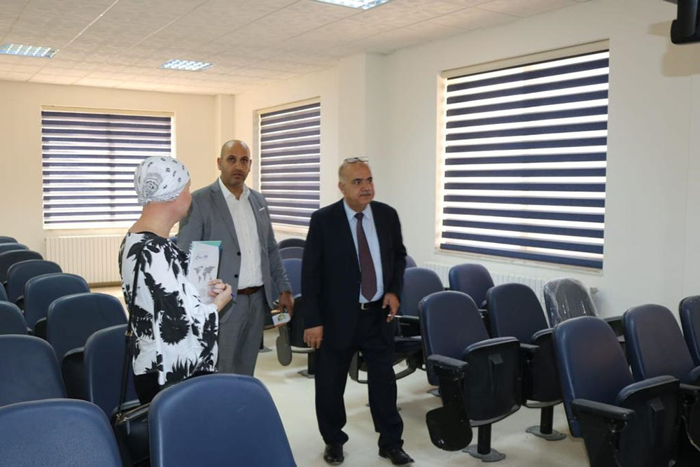 الدكتور صقر الخرابشه يرافقه سناء بجانتحله مديرة العلاقات العامه الدولية في المكتب، بحضور نائب العميد ونخبة من الكادر التدريسي والاداري ،حيث تم بحث سبل التعاون والعمل المشترك لتقديم دورات تدريبية للطلبة وأعضاء الهيئة التدريسية وعقد ورش بحثية وتدريبية وأنشطة ثقافية وتعليمية ،كما تم بحث التبادل الدولي للطلبة.
