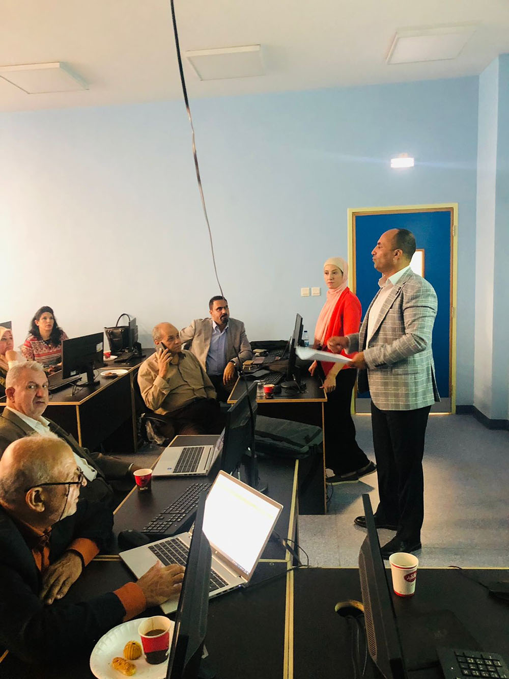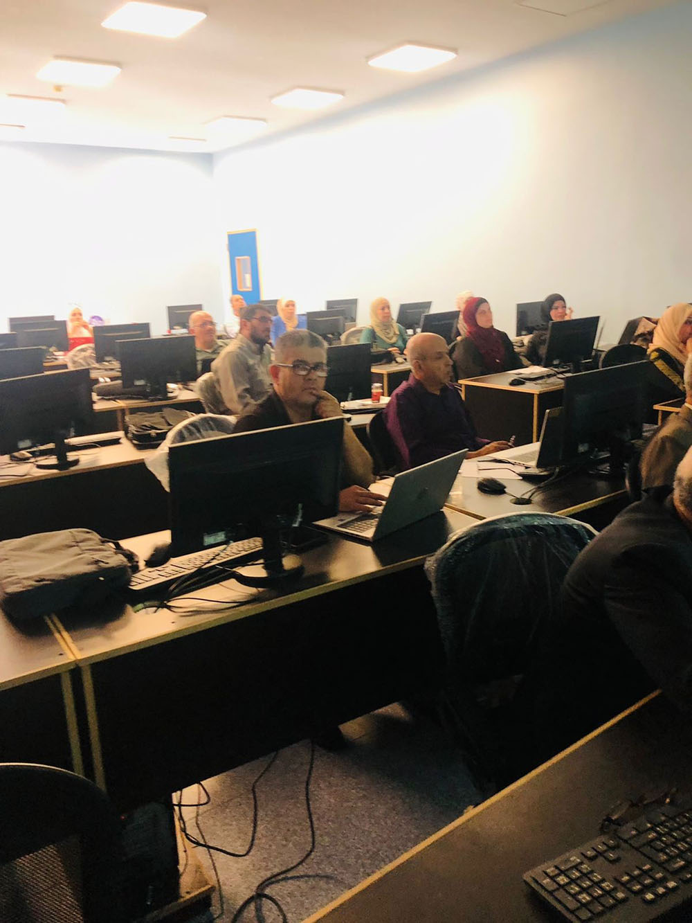 واستهلَّ الدكتور عبد اللّ?ه العُمريّ -عضو اللجنة الفنية- الترحيب والتعريف بممثلي اللّجنة، وبدوره افتتح مدير المركز الدكتور ناجي القبيلات الورشة، مُطلِعًا الزملاء على ما أُنجِز والمأمول تحقيقه، من رفع مستوى اكتساب طلبة الجامعة للُّغة الإنجليزيَّة، وكذلك جوانب التعاون مع الزملاء مدرِّسي هذه المتطلبات؛ للوصولِ إلى نسخة منقَّحة، يُعْمَل على إعادة تصميمها وحوسبتها في نهاية العام الجامعيّ الحالي، وتقديمها للطلبة بشكل مجَّاني، وتحدَّثت مساعدة مدير مركز اللُّغات الدكتورة شيرين الكردي عمَّا تمَّ من تطوير في الجوانب الفنيَّة للمحتوى العلميّ ومدى مطابقتها للمعايير العالميَّة، وخطَّة العمل خلال العام الحالي، وآليات تبادل الخبرات والتغذية الراجعة من ميدان التدريس؛ لعكسه على الكتاب بنسختيه (Online Interactive Book) و (Printable PDF Book)، وقدَّم عضو اللّجنة الزميل أحمد طه القرنه رئيس قسم تكنولوجيا المعلومات والامتحانات في مركز اللُّغات شرحًا عن الجانب التِّقني، وعمل على تهيئة حواسيب الزملاء المحمولة لغايات تشغيل النسخة التفاعليَّة من الكتب، وشاركت الزميلة عضو اللجنة الفنية هناء فرج الله من كُليَّة عجلون إيضاحات لاستفساراتِ بعض الزملاء مدرِّسي المتطلَّبات.