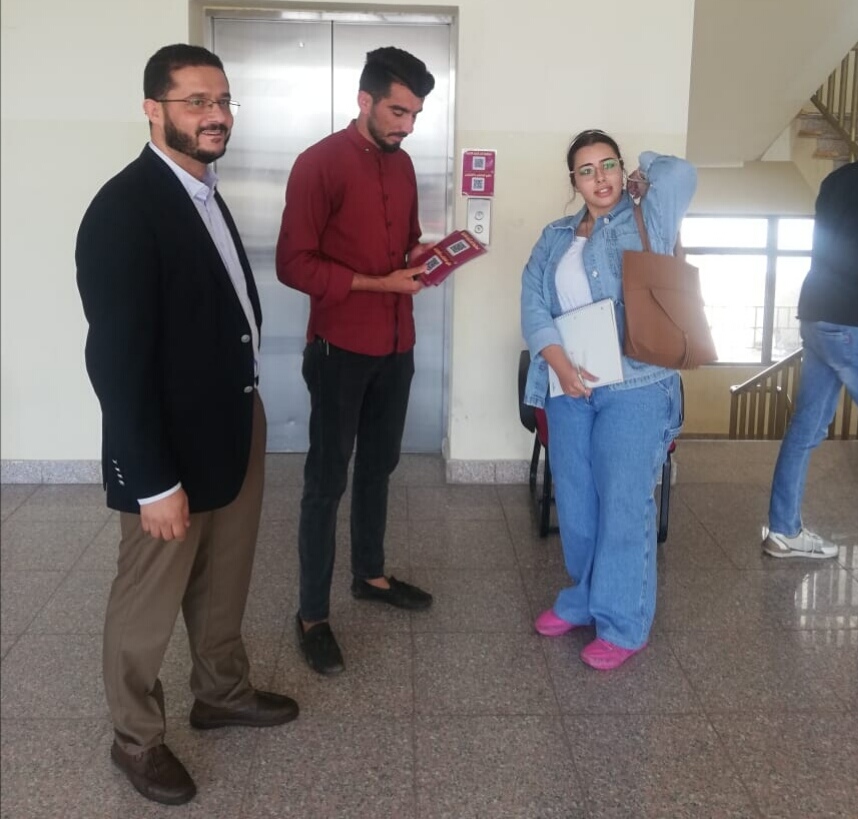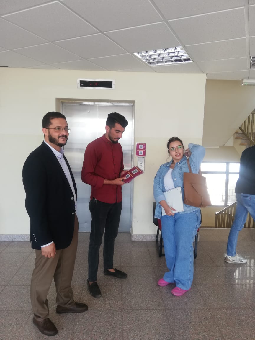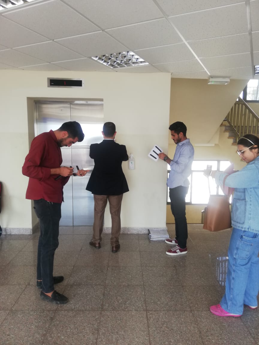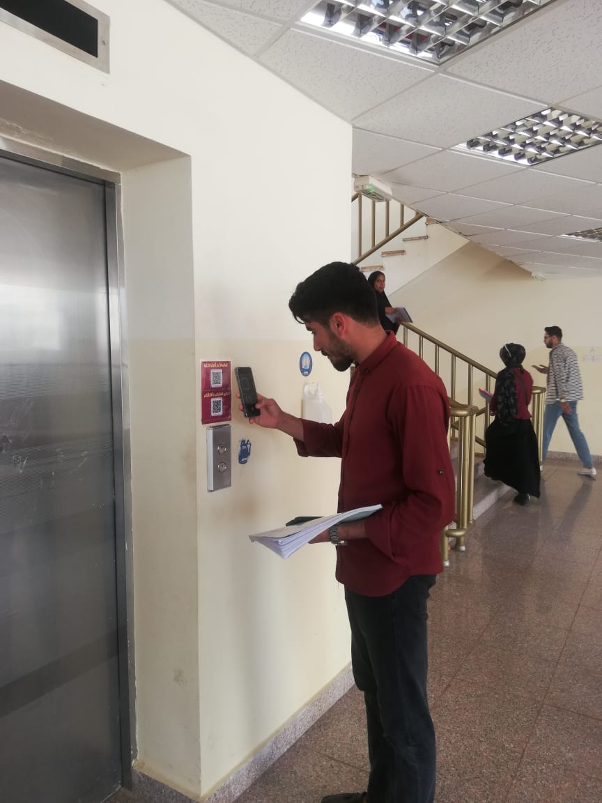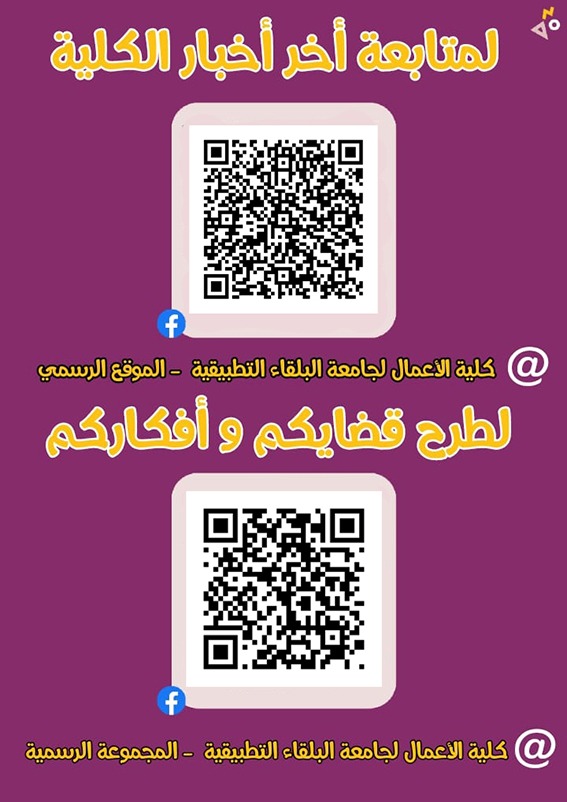 انطلاقا من مبدأ التواصل الالكتروني وطرح قضايا الطلاب من خلال موقع التواصل الاجتماعي فيسبوك تم تثبيت مجموعة من البوسترات وعليها QR code لصفحة كلية الأعمال والمجموعة الرسمية عند مداخل الكلية والمصاعد وذلك لتسهيل عملية وصول الطلبة إلى الصفحات الإلكترونية .