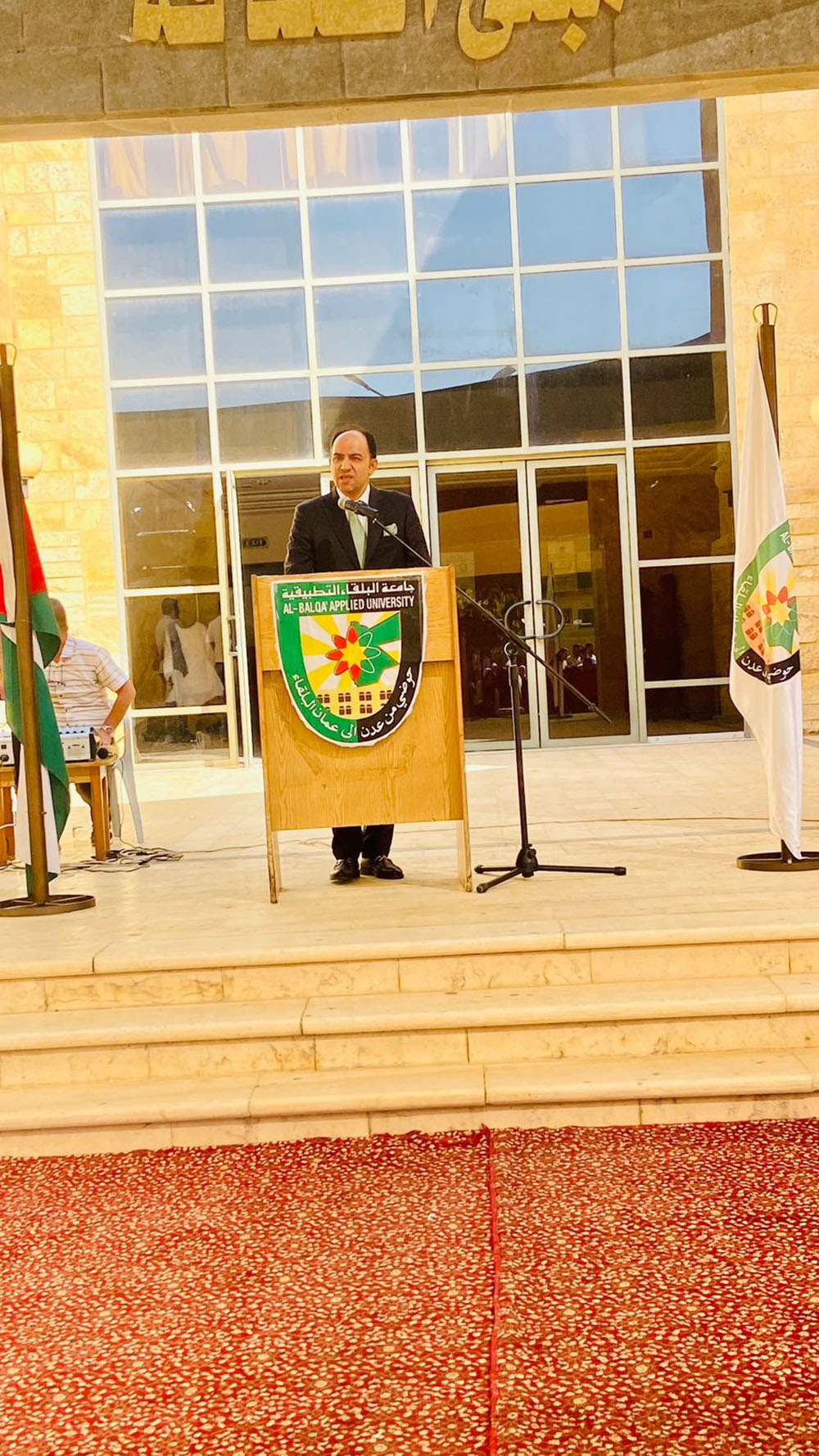 عميد كلية العقبة الجامعية الدكتور احمد بهجت شموط وفي كلمته خلال الاحتفال رحب بالطلبة الجدد متمنيا لهم التوفيق في حياتهم الجامعية الجديدة مشيدا بالمستوى التعليمي والأكاديمي المتميز للجامعة في مختلف تخصصاتها ، التي تحقق من خلالها دعم احتياجات سوق العمل في محافظة العقبة . مشيرًا إلى أن جامعة البلقاء التطبيقية – كلية العقبة الجامعية تضع البحث العلمي على رأس أولوياتها، وتسعى لتطوير أفكار طلبتها الإبداعية ومساعدتهم للوصول إلى افضل مستوى من التعليم وصقل الشخصية إضافة إلى أهمية التطوع واستغلال الفرص وتنمية القدرات والمهارات من خلال الاشتراك بالانشطة اللامنهجية التي تنظمها الكلية وذلك من خلال الشراكة مع مؤسسات المجتمع المحلي في القطاعين العام والخاص .