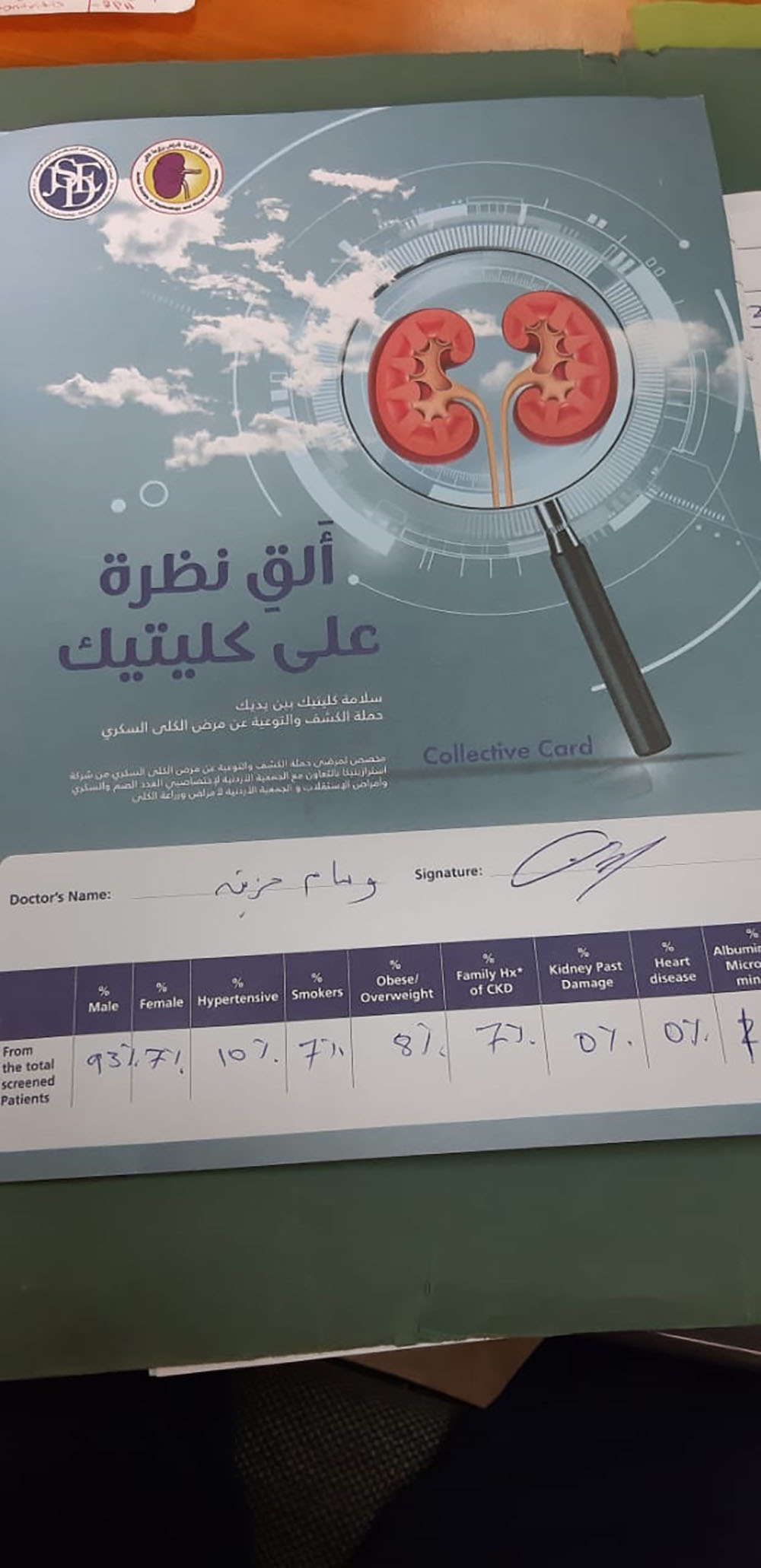 حيث أطلقت حملة الق نظرة على كليتك بالتعاون مع الجمعية الأردنية لاختصاصيي الغدد الصم والسكري والاستقلاب والجمعية الأردنية لأمراض و زراعة الكلى.
