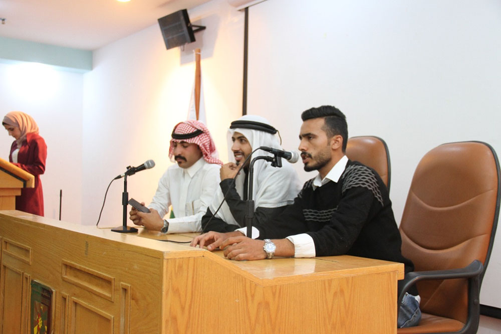 وقدم الطلبة همام حسن ويوسف الخوالده ومعتصم هلال والميزن الكعابنه وصخر بني عطا مجموعة من القصائد الشعرية النبطية التي امتازت بالبساطة ومحاكاة الواقع والسلاسة والعذوبة والغزل إضافة ان تناول الأبيات لمجموعة من القضايا الاجتماعية حيث لاقت القصائد الشعرية تفاعلاً كبيراً من قبل الحضور.