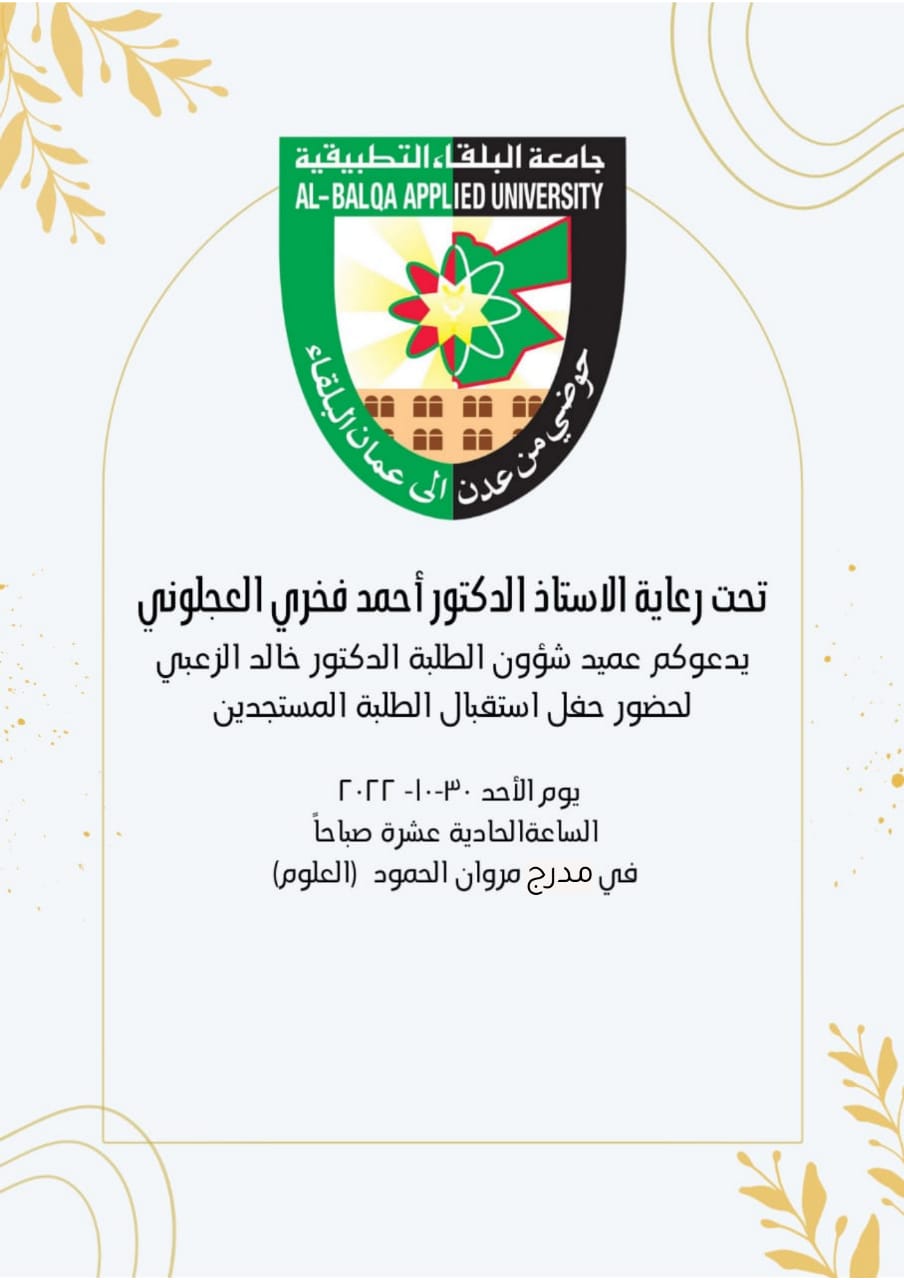 دعوة لحضور حفل استقبال الطلبة المستجدين
