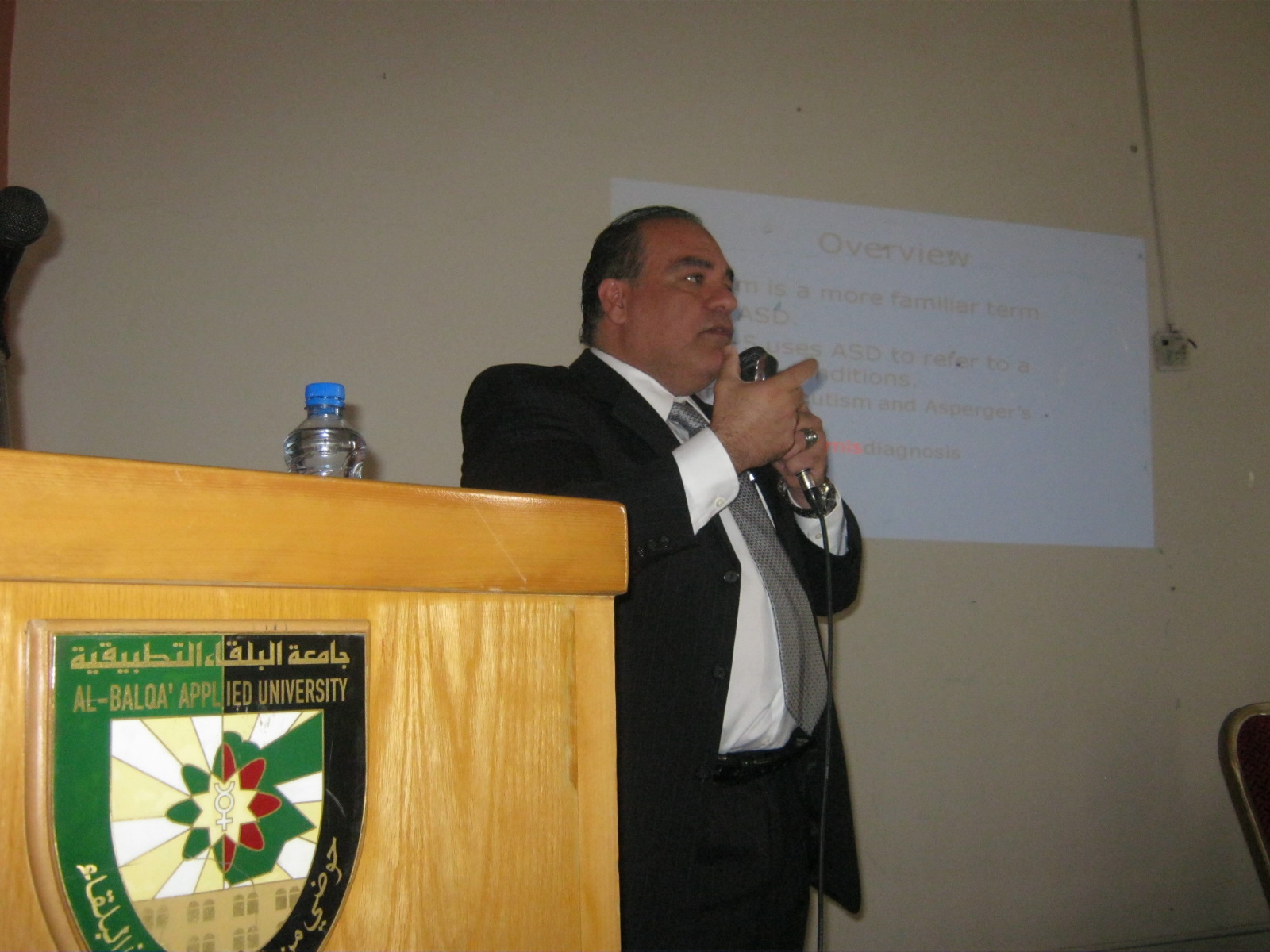 نيابة عن الدكتور محمد السويلميين عميد كلية الاميرة عالية الجامعية رعا رئيس قسم علم النفس والتربية الخاصه الدكتور فادي سماوي محاضره بعنوان التوحد القاها الدكتور محمد خالد حمزه المدرس في جامعة لامار في ولاية تكساس الامريكية والمتخصص في علم النفس العصبي والتربية الخاصه، وبالتنسيق مع الدكتور يعقوب الفرح حيث حاورته فيها الدكتوره صيدا العدوان مساعد العميد لشؤون التدريب والتطوير.