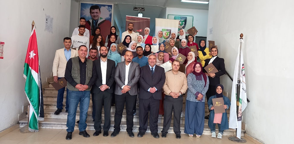 وفي ختام الدورة قام عميد الكلية بتسليم شهادات شكر وتقدير لكل من الأستاذ سمير فاخوري منسق هيئة شباب كلنا الأردن والى الدكتور زيد قطامي مدرب الدورة، إضافة الى شهادات للطلبة الذين استكملوا البرنامج التدريبي وعددهم يقارب (35 طالب) موزعين بين طلبة من الكلية وطلبة من المجتمع المحلي، هذا وقد أشرف على تنظيم وتنسيق هذه الدورة كل من رئيس قسم الاستشارات والتدريب وخدمة المجتمع المحلي السيد زيد الحياصات ورئيس قسم العلاقات العامة والإعلام الآنسة مها الحجاج