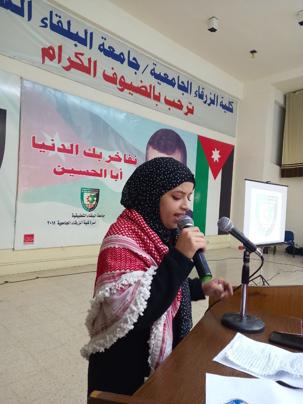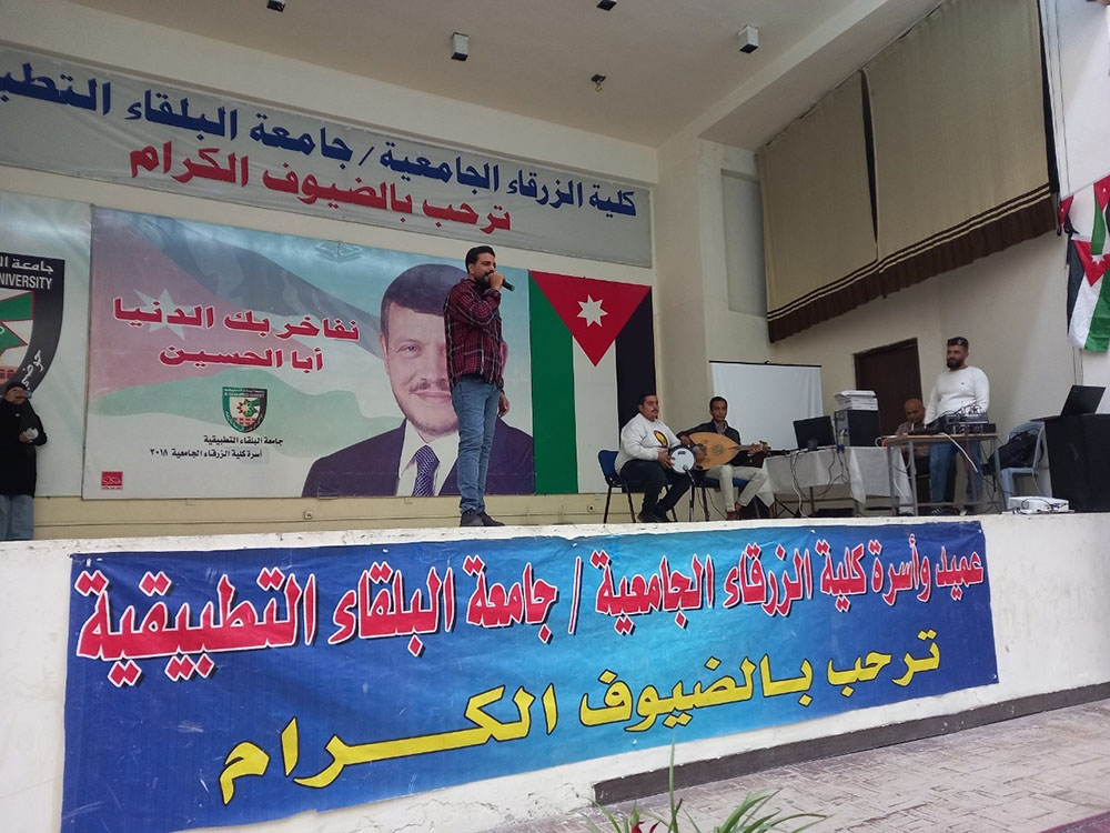 هذا واشتمل الحفل على تقديم عرض تعريفي للمرافق العامة والمختبرات الأكاديمية في الكلية بالإضافة الى العديد من الفقرات مثل القصائد الشعرية وعروض الدبكة الشعبية والأغاني الوطنية والتي قدمها طلبة كلية الزرقاء الجامعية ، ومن جانبها قدمت فرقة هيئة شباب كلنا الأردن/الزرقاء فقرة ألعاب الخفة.