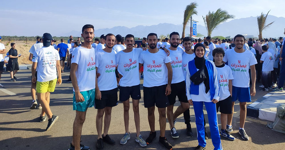ضمن فعاليات التوعية باضرار آفة المخدرات ،أقامت مديرية شرطة محافظة العقبة بالتعاون مع كلية العقبة الجامعية ،سباق ماراثون رياضي يهدف الى توعية الشباب، بالآثار السلبية للمخدرات على الصحة البدنية والنفسية ،وأهمية ممارسة النشاط الرياضي على صحة الفرد .