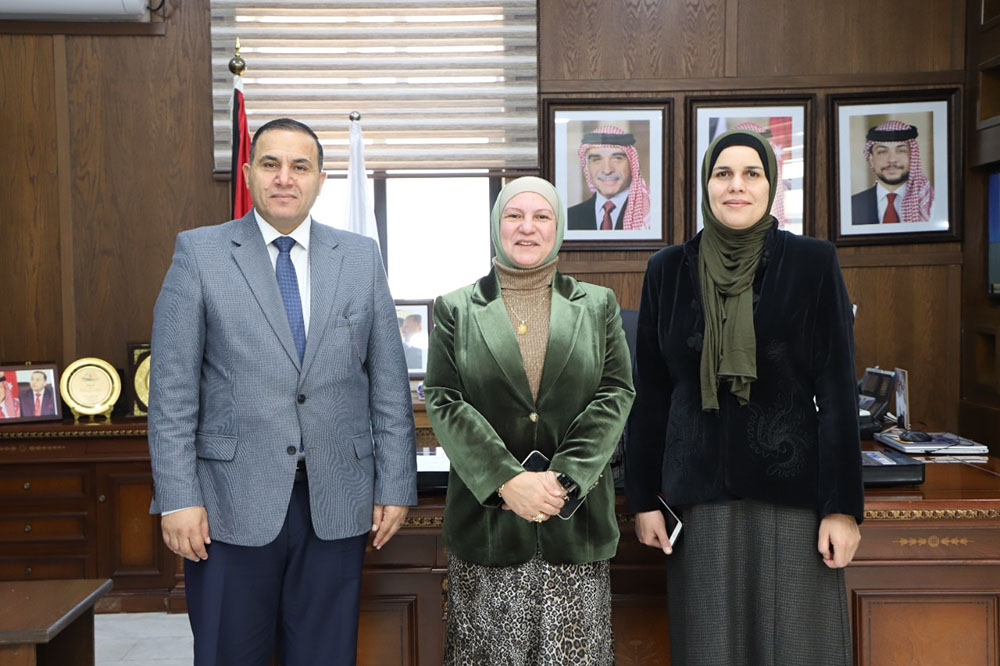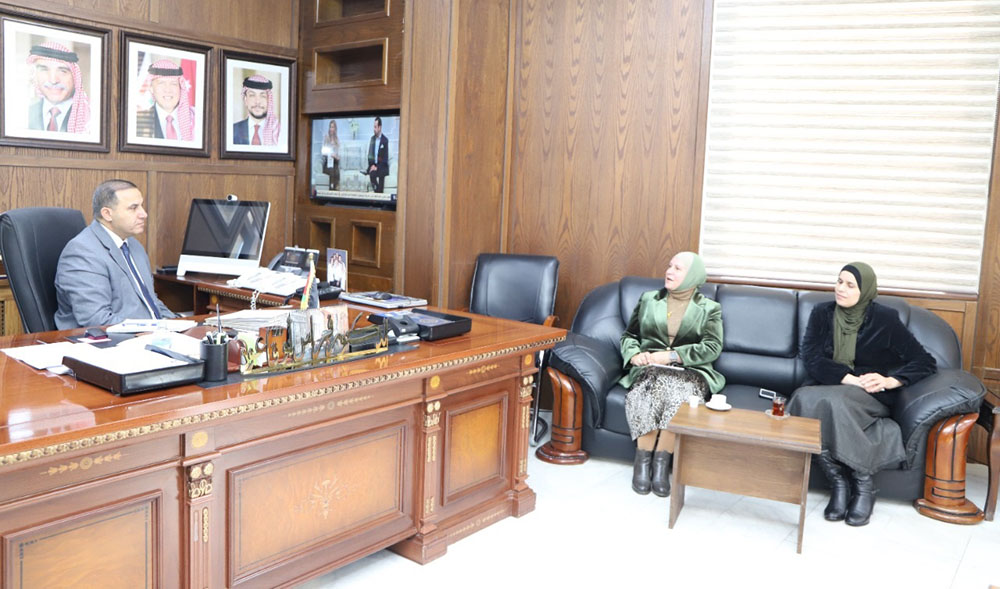 حيث استقبل عطوفة الدكتور فراس مسلم ابو قاعود محافظ البلقاء مديرة المركز الاردني الكوري الدكتورة ربا ابو شهاب ورئيس قسم التدريب وتطوير القدرات السيدة ايمان العمايرة.