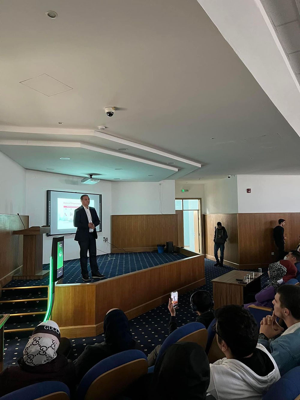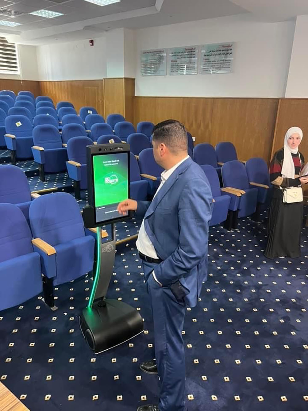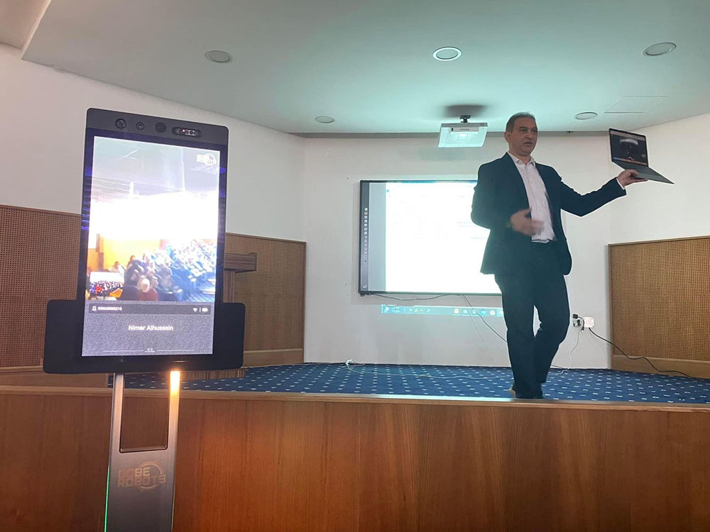 ضمن الخطة الاستراتيجية لكلية الذكاء الاصطناعي وفي ضوء ربط مخرجات العملية التعليمية التعلمية وبما يتلاءم مع سوق العمل والتطورات التكنولوجية المعاصرة، وبهدف صقل المهارات والقدرات المعرفية والتركيز على الجوانب العملية والتقنية لطلبتها، فقد نظمت الكلية ورشة عمل بعنوان: تطور الإتصال المرئي لطلبة الكلية والتي قدمها السيد نمر حسين الحصان/خبير في الذكاء الاصطناعي والروبوتات، حيث تضمنت الفعالية إلقاء محاضرة عن آخر ما توصلت له تقنيات الاتصال المرئي وكيف أصبح الذكاء الاصطناعي في تسارع كبير في وقتنا الحالي وما يجب علينا فعله لمواكبة هذا التطور ودمجه في حياتنا ودراستنا ومجتمعاتنا، وتمكين الطلبة من الدراسة والعمل بروح الفريق الواحد لدخول عالم الروبوتات والذكاء الاصطناعي، كما وتطرق إلى آلية عمل جهاز روبوت التواصل عن بعد من شركة GoBe حيث أن آلية عمله هو الدخول على جهاز الحاسب واختيار الروبوت وعن طريق شبكة الانترنت إذ يتم من خلاله فتح إتصال مرئي مع الروبوت من أي مكان وزمان والتحكم بالجهاز صوت وصورة وإمكانية الحركة في الموقع، كما وتم النقاش عن أهمية تواجده في أماكن عديدة كالمستشفيات والمتاحف والجامعات وبما يخدم المجتمع وتطوره.
