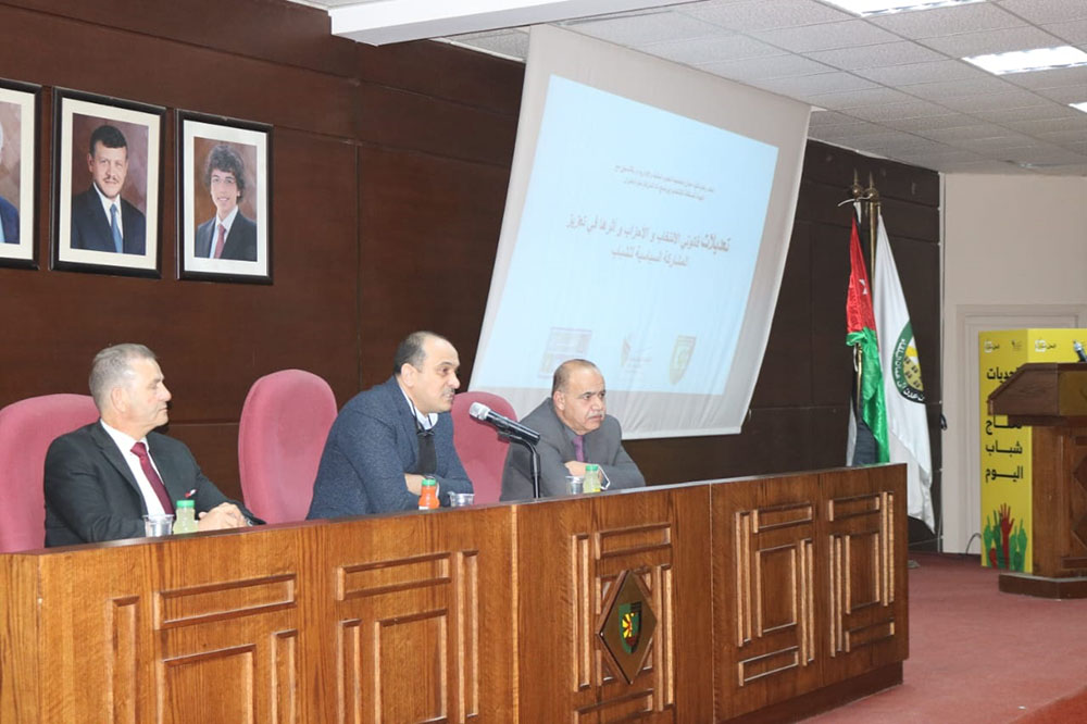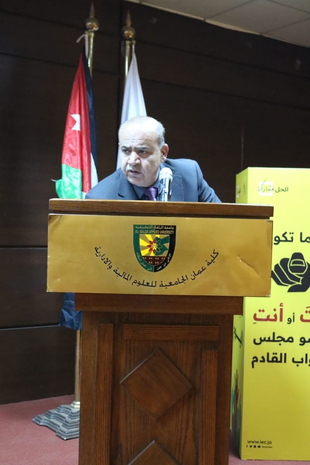 مندوبا عن عطوفة رئيس جامعة البلقاء التطبيقية الأستاذ الدكتور احمد فخري العجلوني رعى الأستاذ الدكتور ناصر كلوب نائب الرئيس لشؤون الكليات ندوة (تعديلات قانوني الأحزاب والانتخاب ودورها في تعزيز المشاركة السياسية للشباب) والتي نظمها قسم الإرشاد الوظيفي ومتابعة الخريجين في كلية عمان الجامعية بالتنسيق مع برنامج أنا اشارك / جامعات وبحضور النائب عمر العياصرة وأعضاء الهيئة التدريسية والإدارية وطلبة الكلية .