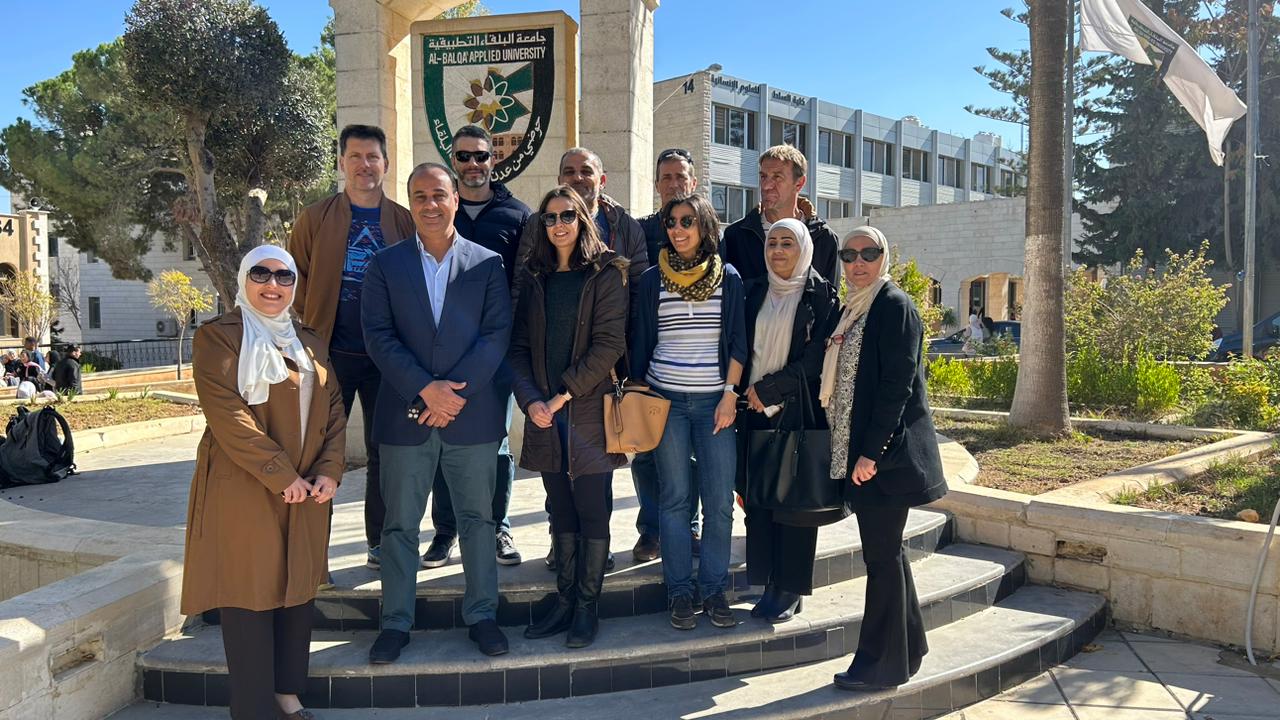 في إطار جهود جامعة البلقاء التطبيقية توطيد العلاقات الأكاديمية مع الشركاء الدوليين خدمة وتحقيقا لأهدافها الاستراتيجية، زار الجامعة وفد فرنسي مكون من خبراء في هندسة العمارة والترميم والصيانة وذلك بالتعاون مع السفارة الفرنسية في الأردن، وقد اطلع الوفد الزائر ومعهم  السيد خلدون الخريسات والمهندسة لينا أبو سليم من مؤسسة اعمار السلط وفريق من وحدة التعاون والعلاقات الدولية والدكتورة ميساء الشوملي على منجرة الجامعة ومشاغلها التابعة لوحدة الخدمات العامة ورافقهم السيد عبدالرحمن عطيات، والمهندس محمد عربيات الذي تحدث عن أهم الأعمال التي قامت وتقوم بها المنجرة وأقسامها المختلفة وأهم الانجازات التي يقومون بها على الصعيد الداخلي في الجامعة أو الصعيد الخارجي المحلي والدولي، وأكدت الدكتورة دانا محادين مديرة وحدة التعاون والعلاقات الدولية على أهم مميزات جامعة البلقاء التطبيقية وعن جهود الجامعة في ربط المخرجات الأكاديمية مع متطلبات سوق العمل المحلي والدولي، والدكتورة ميساء الشوملي من قسم هندسة العمارة التي أبدت اهتمام الجامعة ومدينة السلط بشكل خاص في أعمال الترميم لأهم البيوت الأثرية القديمة لمدينة السلط ومدى انعكاس هذا التدريب الميداني على خبرة الطلبة العملية وتأهيلهم لسوق العمل المحلي والدولي.