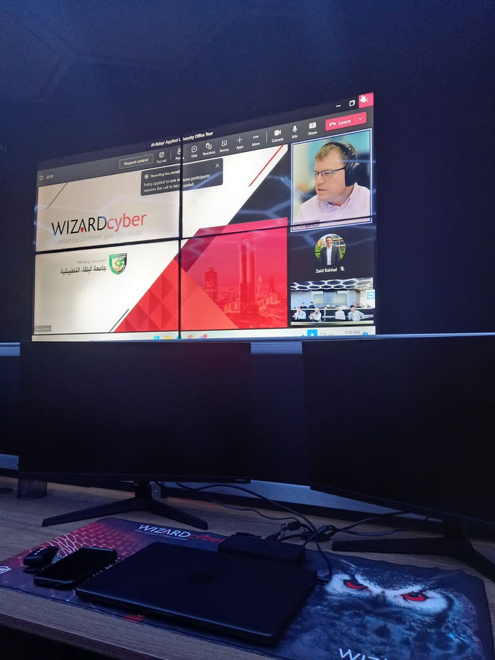 انسجاما مع رؤية ورسالة جامعة البلقاء التطبيقية، وبهدف صقل وتطوير مهارات وقدرات الطلبة في الجوانب العملية بحيث تتوافق مع الجوانب النظرية والمعرفية لديهم، عقدت كلية الذكاء الاصطناعي ممثلة بعميد الكلية د. حمزة الدباس ومساعدة العميد للشؤون الطلابية د. أرياف العدوان ومجموعه من أعضاء الهيئة التدريسية والطلبة في تخصص أمن المعلومات والفضاء الإلكتروني زيارة لشركة Wizard IT for Cyber Security المتخصصة في مجال أمن المعلومات، حيث قام المدير التنفيذي للشركة السيد Paul Goldney بالحديث عن الخدمات التي تقدمها الشركة وفرص التدريب والتشغيل المتاحة لطلبة الكلية فيها، كما وتم بحث سبل التعاون المشترك لتوفير فرص التدريب الميداني لطلبة تخصص أمن المعلومات, كما وتم الإتفاق على عقد ورشات تدريبية للطلبة بما يضمن انسجامهم وانخراطهم في سوق العمل مستقبلا بكل سهولة ويسر.