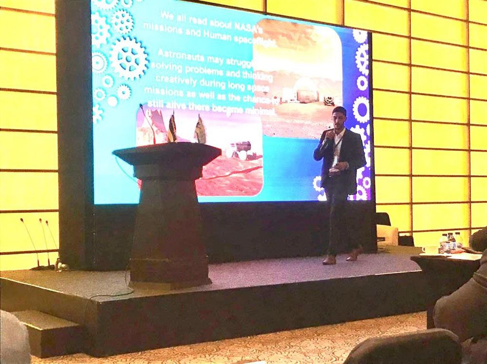 بتنسيق من مركز الابتكار و الابداع و ريادة الاعمال تم استعراض مشروعين من مشاريع طلاب جامعة البلقاء التطبيقيه - كلية الهندسه التكنولوجية على حاضنات الاعمال في ملتقى المهندسين الشباب العرب سيق 22