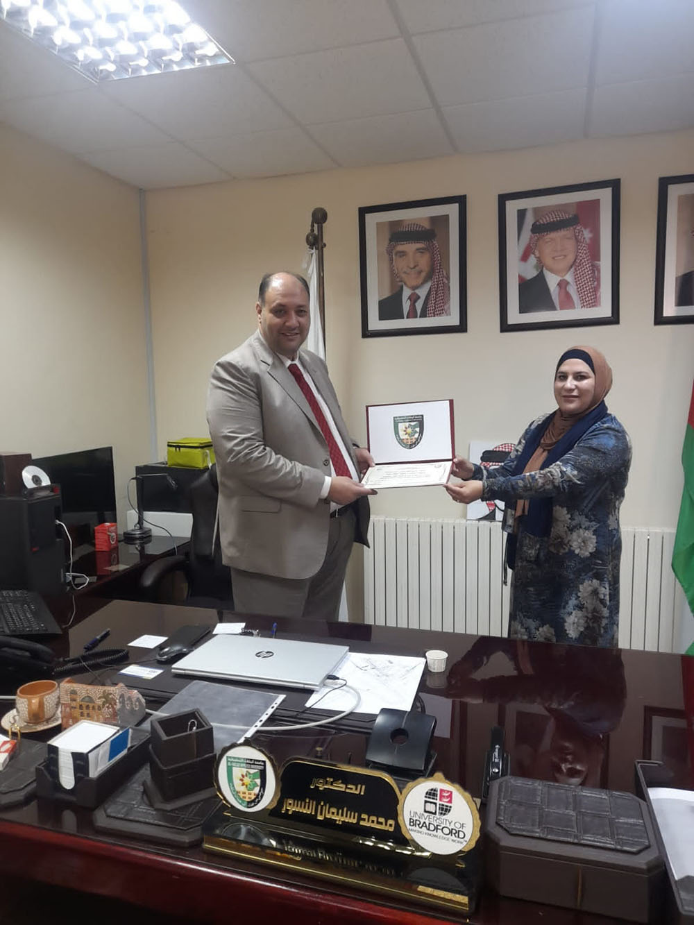 انسجامًا مع توجهات جامعة البلقاء التطبيقية في تحسين الأداء والتطوير وتحفيز قيم التنافس البنّاء في العمل لدى الموظفين قام عميد كلية الاعمال الدكتور محمد النسور بتسليم شهادة الموظف المثالي عن شهر تشرين ثاني / 2022 للموظفة صفاء خرابشة وذلك تقديرا لجهودها المتميزة وعطاءها خدمة للكلية مقدما شكره لكافة العاملين في الكلية داعيا الجميع الى العمل بروح الفريق الواحد وتحقيق الانجاز وتعزيز قيم الانتماء الوظيفي للجامعة.