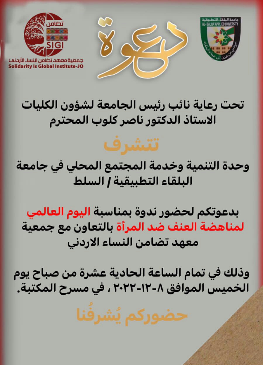 دعوة لحضور ندوة بمناسبة اليم العالمي لمناهضة العنف ضد المرأه