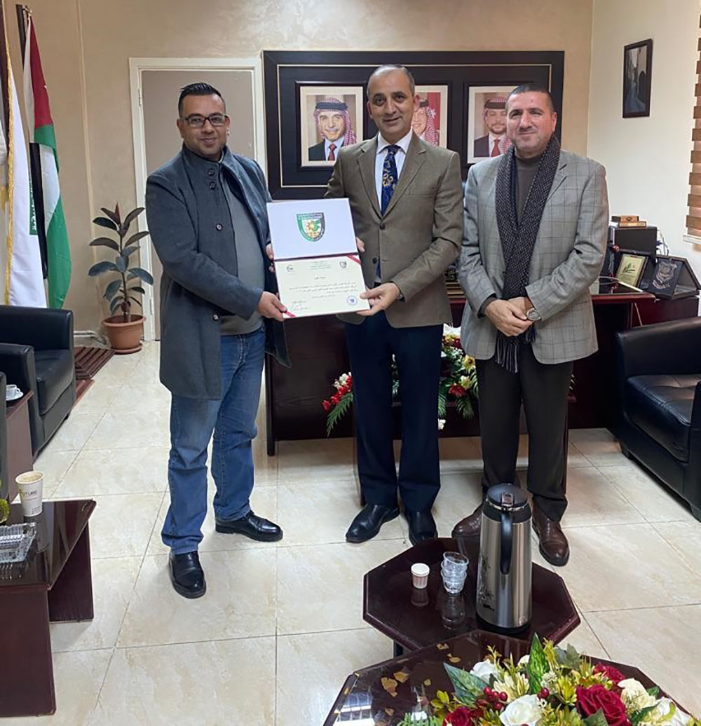 انسجامًا مع توجهات جامعة البلقاء التطبيقية في تحسين الأداء والتطوير وتحفيز قيم التنافس البنّاء في العمل لدى الموظفين قام عميد شؤون الطلبة الدكتور خالد ناصر الزعبي بتسليم شهادة الموظف المثالي عن شهر تشرين ثاني / 2022 للموظف خلدون النسور وذلك تقديرا لجهوده المتميزة في خدمة عمادة شؤون الطلبة.